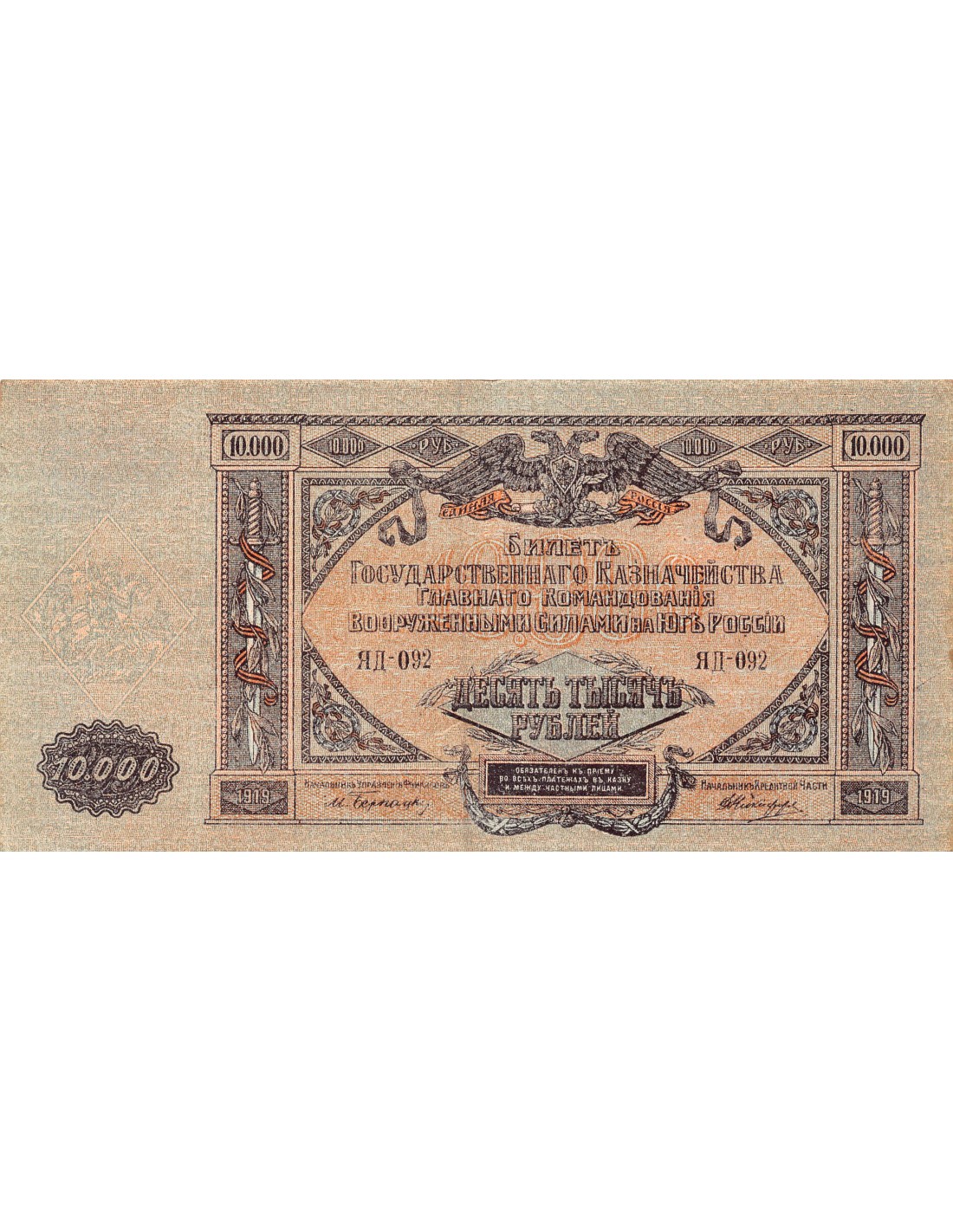 RUSSIE DU SUD, HAUT COMMANDEMENT DES FORCES ARMEES - 10 000 ROUBLES 1919