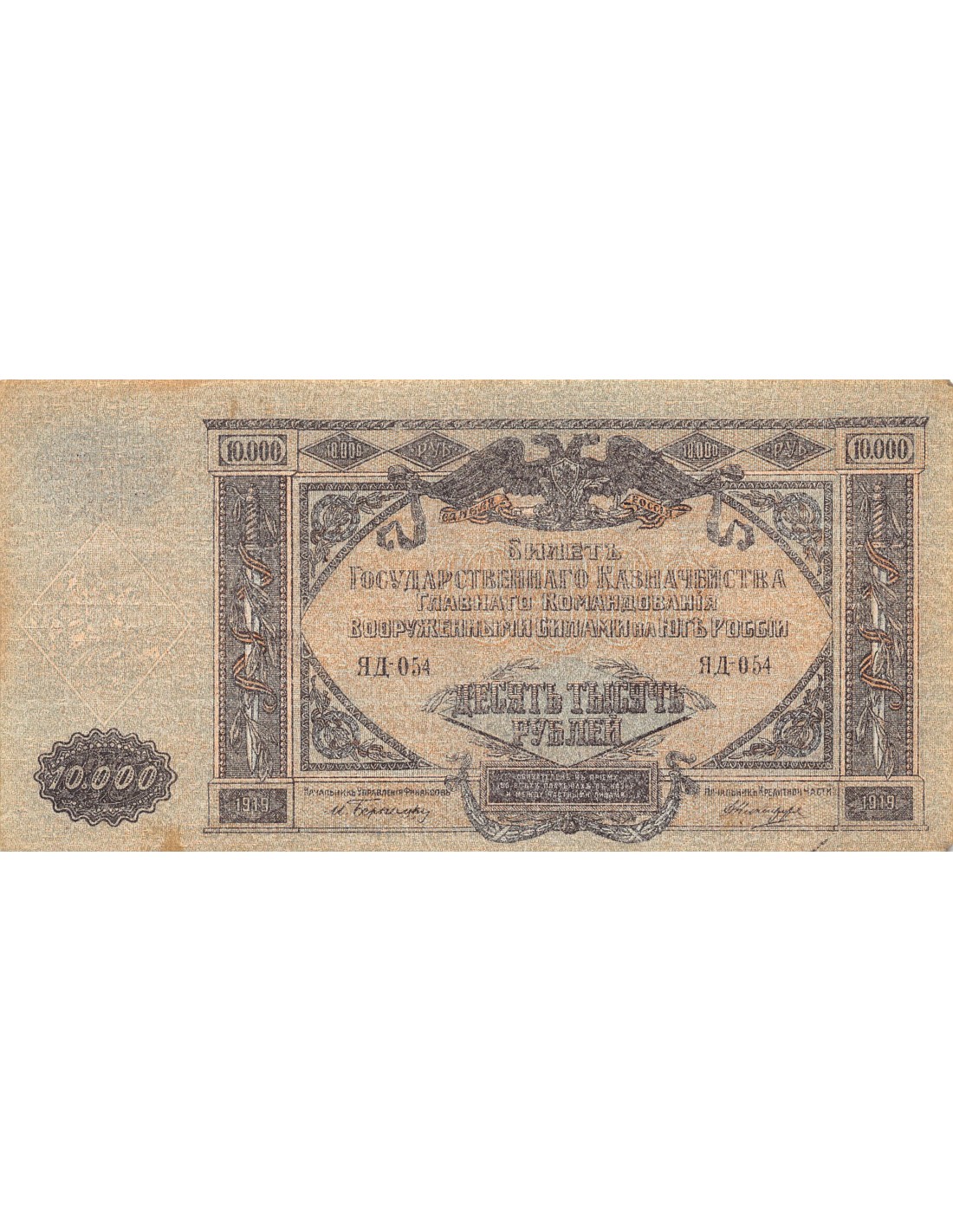 RUSSIE DU SUD, HAUT COMMANDEMENT DES FORCES ARMEES - 10 000 ROUBLES 1919