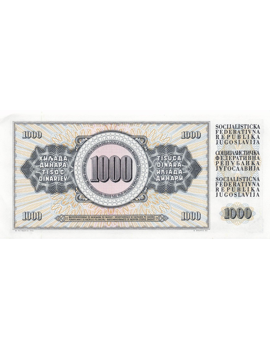 Yougoslavie 1000 Dinara - 1981 - Remplacement - P.92d
