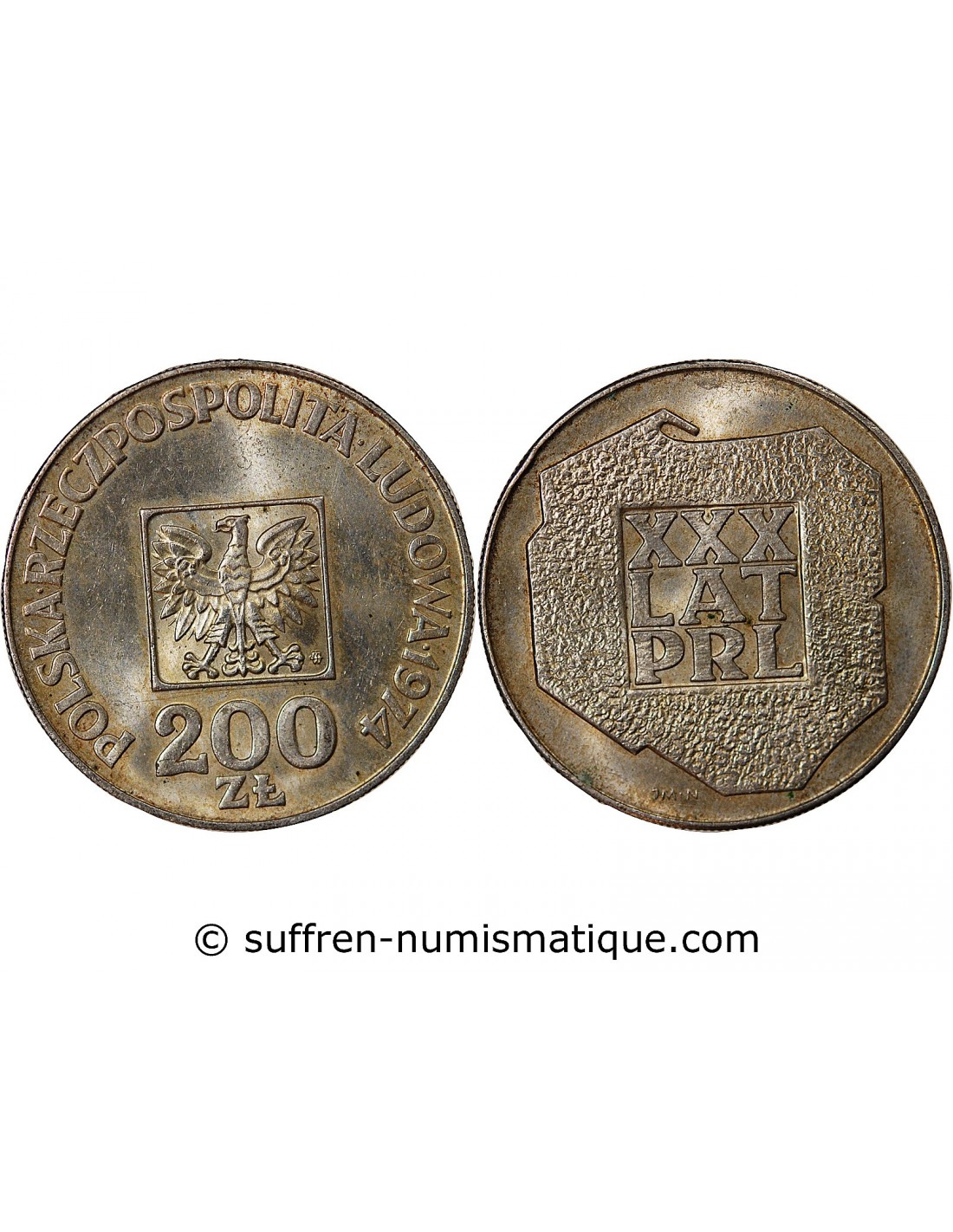 POLOGNE, 30e ANNIVERSAIRE DU PRL - 200 ZLOTYCH ARGENT 1974