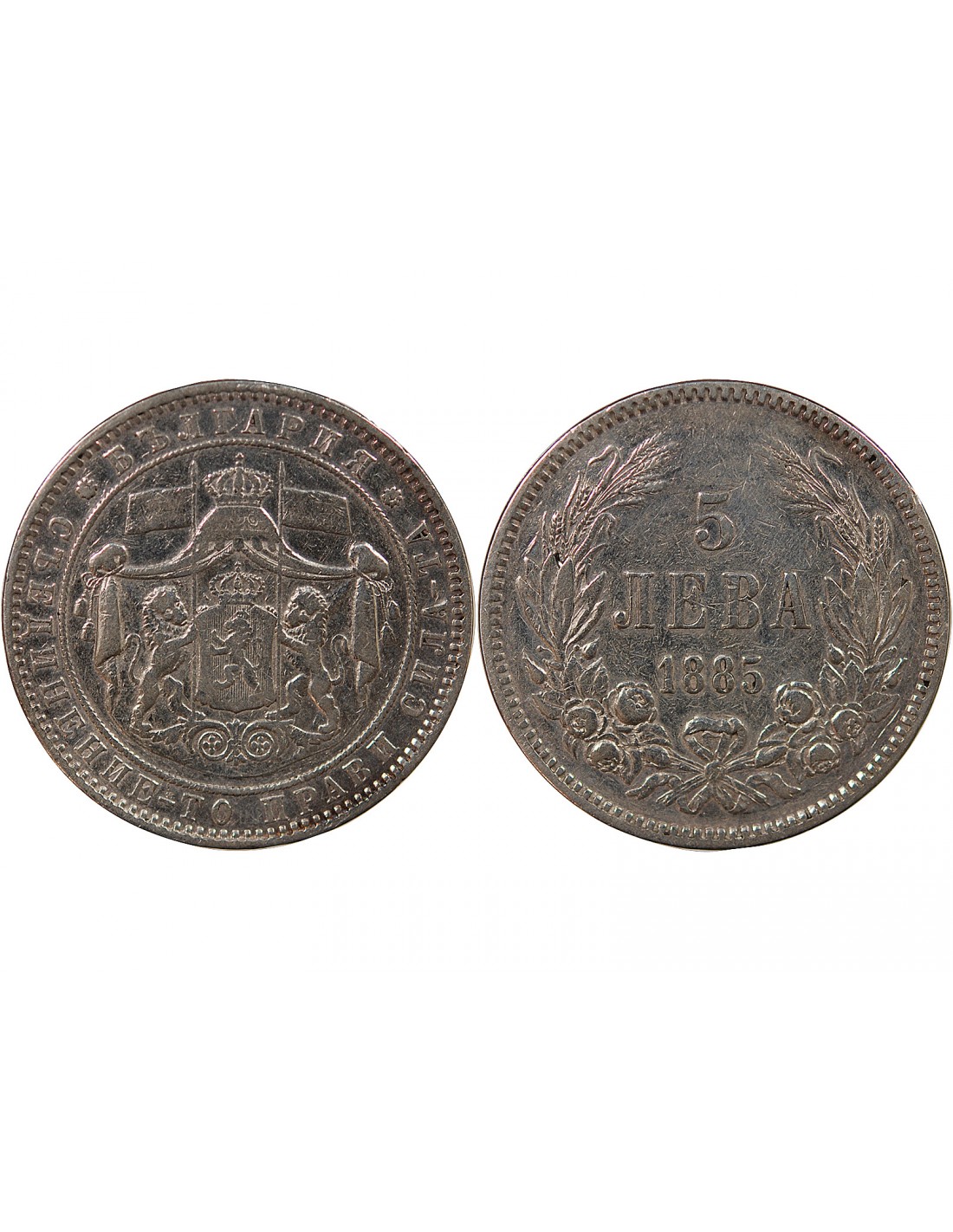BULGARIE, ALEXANDRE Ier - 5 LEVA ARGENT 1885 SAINT PETERSBOURG