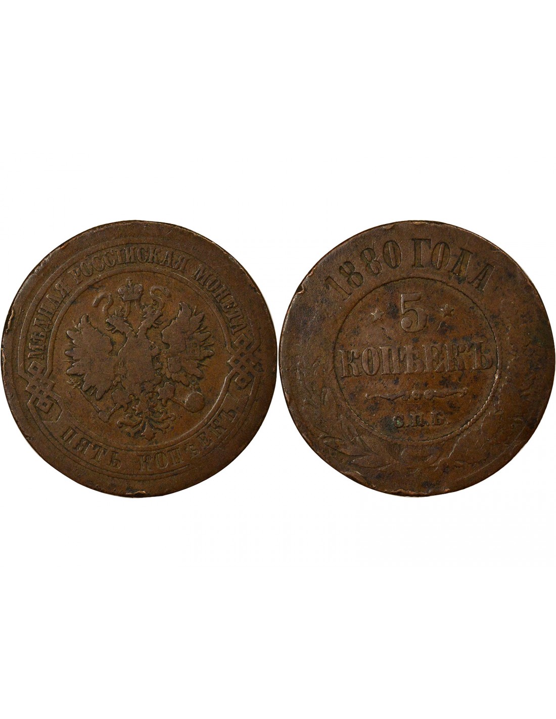 RUSSIE, ALEXANDRE II - 5 KOPECKS 1880 С.П.Б. ST PETERSBOURG