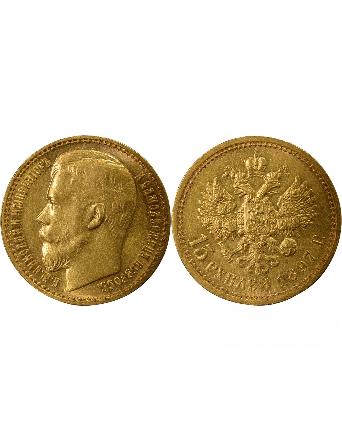 RUSSIE, NICOLAS II - 15 ROUBLES OR 1897 SAINT PETERSBOURG АГ