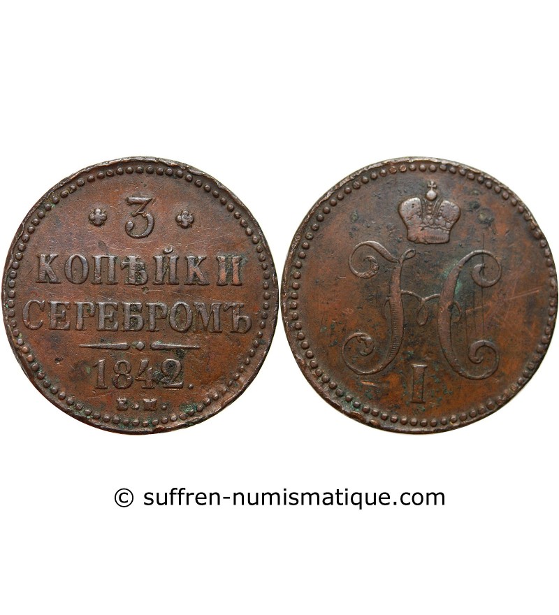 RUSSIE - NICOLAS Ier 3 KOPEKS 1842 EKATERINBOURG