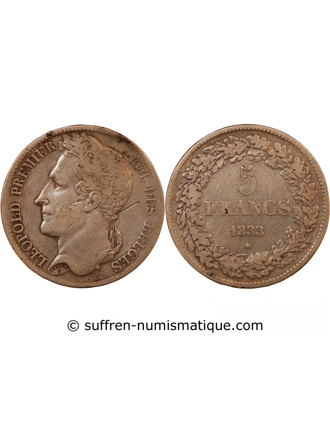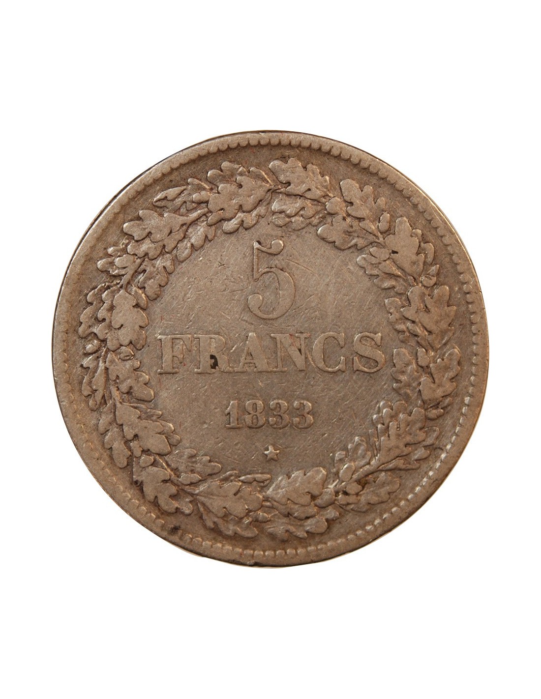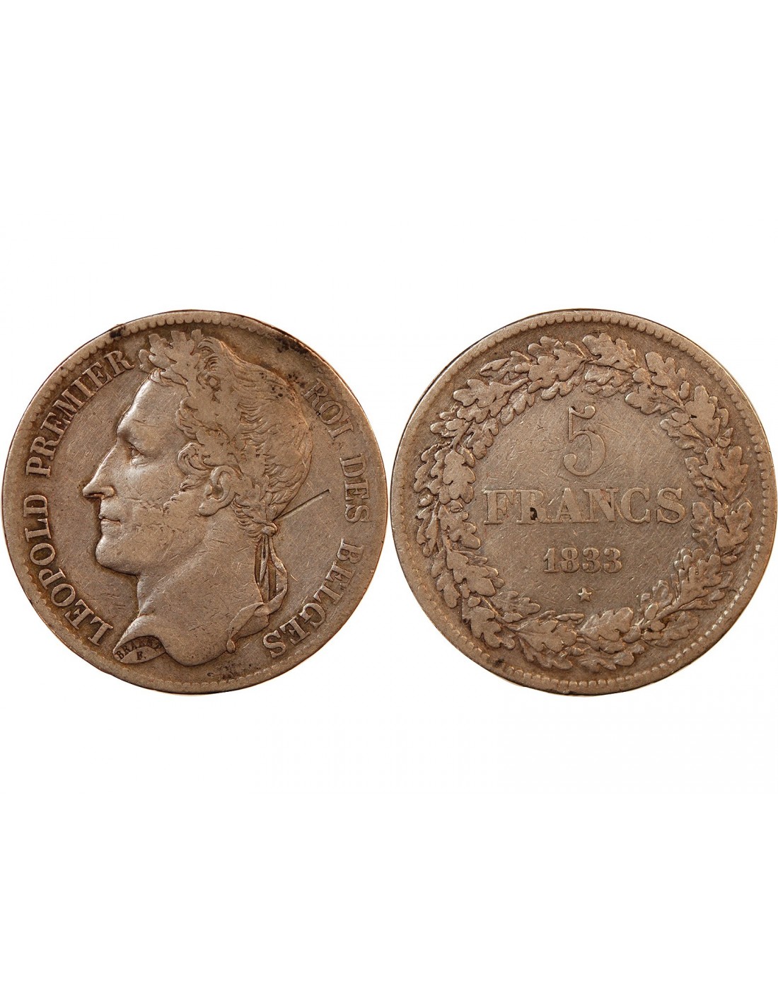 BELGIQUE, LEOPOLD Ier - 5 FRANCS ARGENT 1833