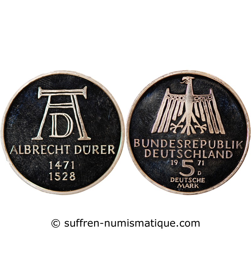 ALLEMAGNE - 5 MARK ARGENT 1971 G - ALBRECHT DÜRER - BELLE EPREUVE