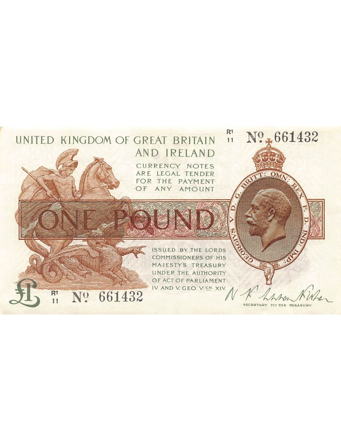 ANGLETERRE, TRESORE, Warren Fisher - 1 POUND 1922 P-359A