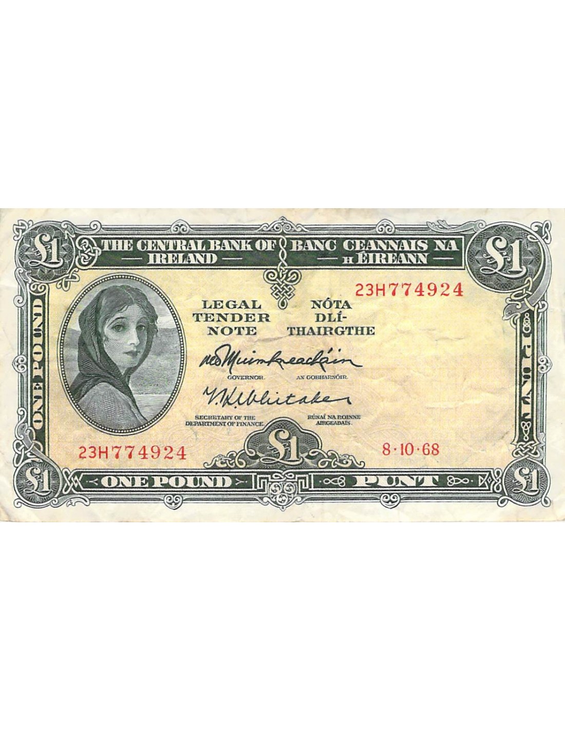 IRLANDE, LADY LAVERY - 1 POUND 08/10/1968