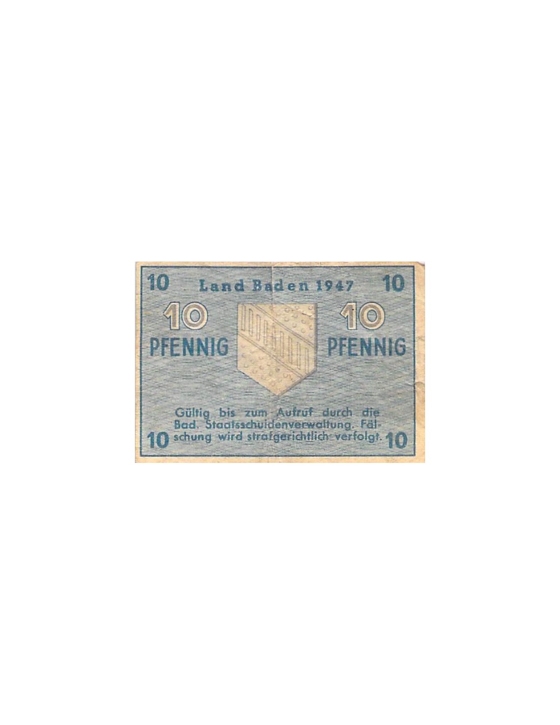 ALLEMAGNE, BADE, OCCUPATION FRANCAISE - 10 PFENNIG 1947