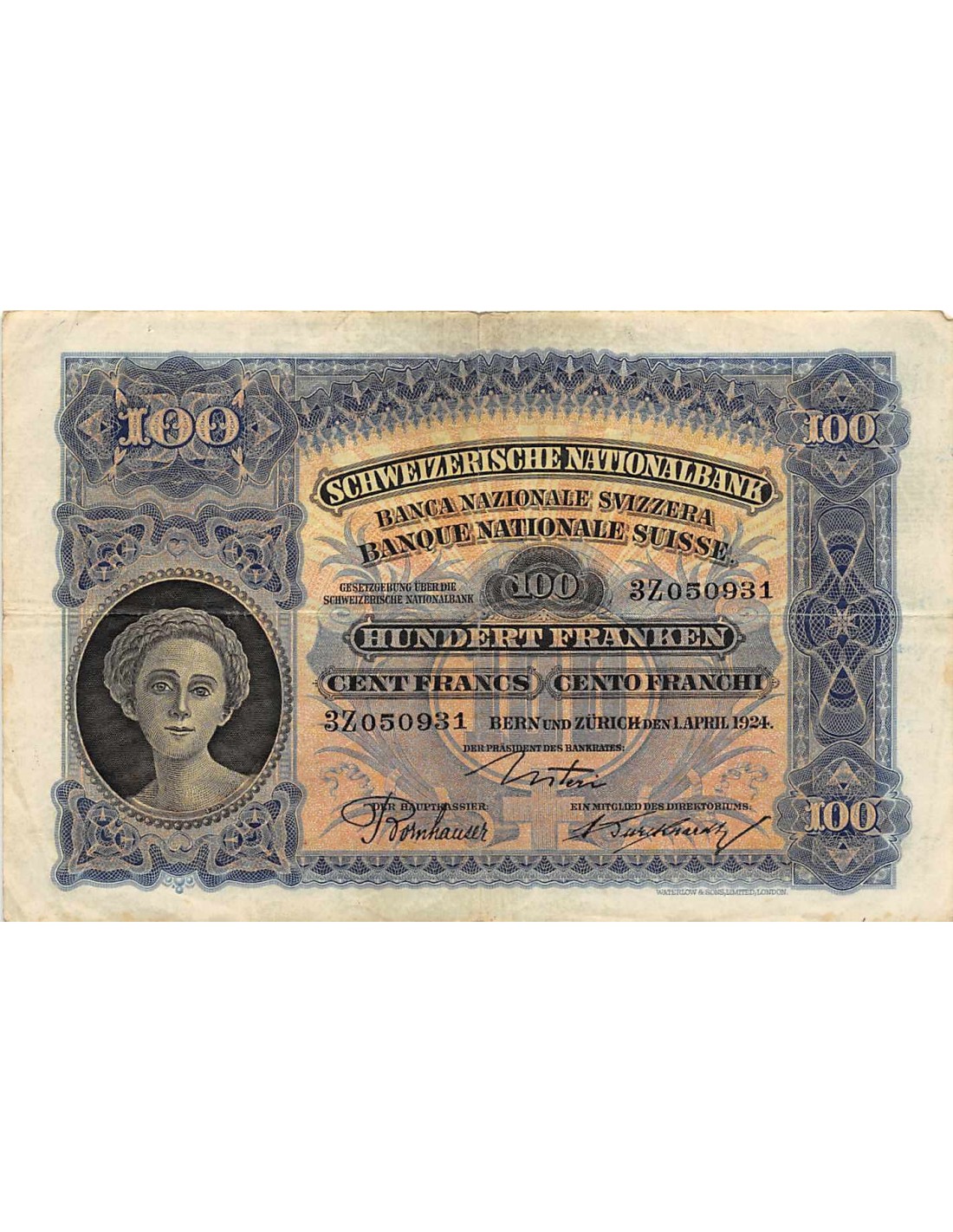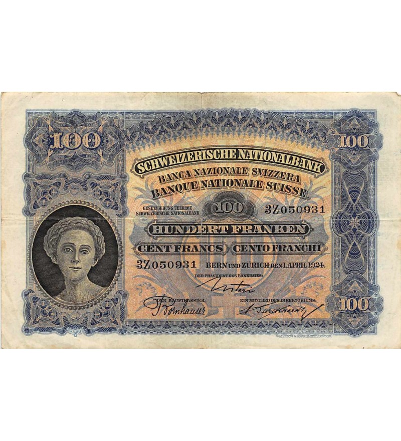 SUISSE - 100 FRANKEN / 100 FRANCS 01.04.1924 Série 3Z