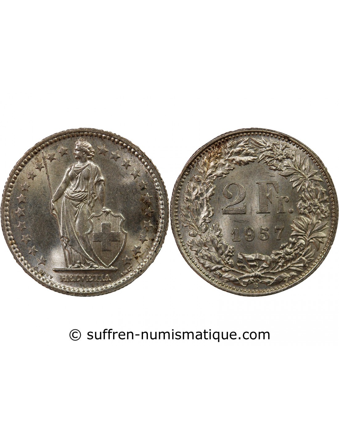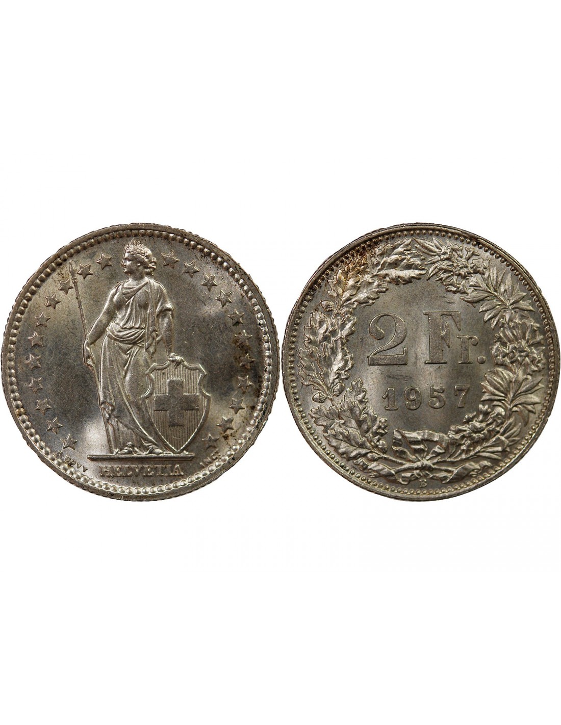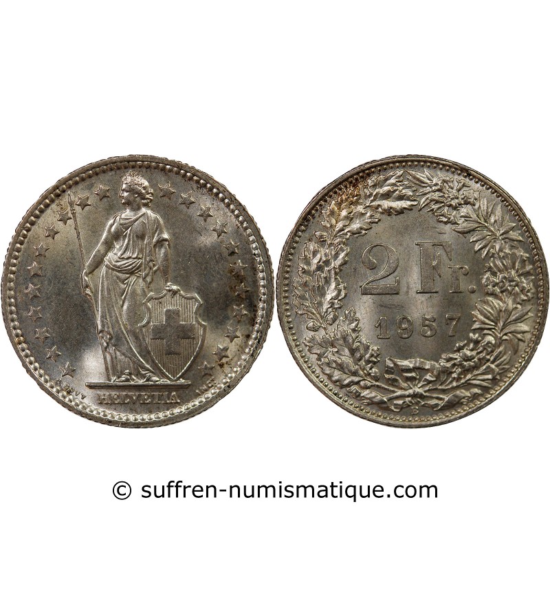SUISSE, HELVETIA DEBOUT - 2 FRANCS ARGENT 1957 B BERNE