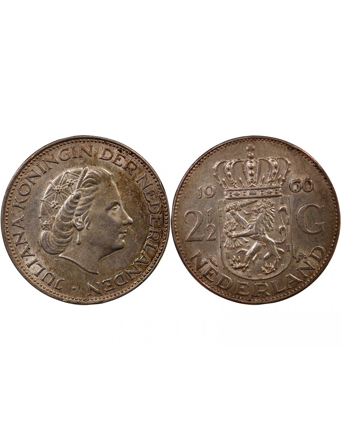 PAYS-BAS, JULIANA - 2 1/2 GULDEN ARGENT 1960