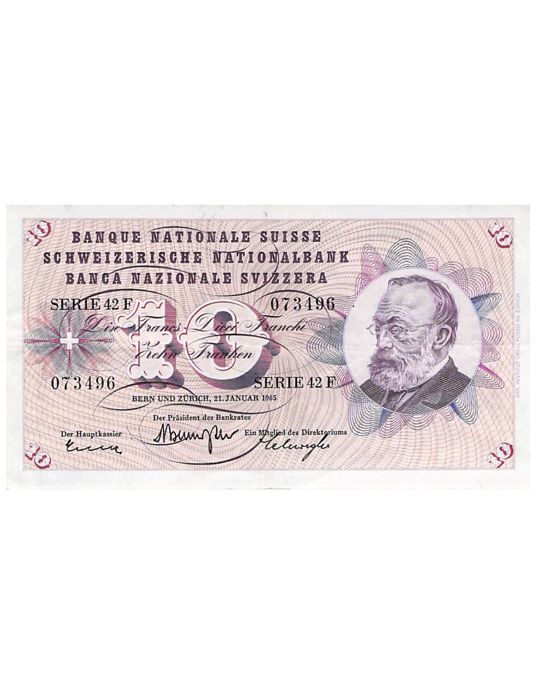 SUISSE, GOTTFRIED KELLER - 10 FRANCS 21/01/1965 - TTB
