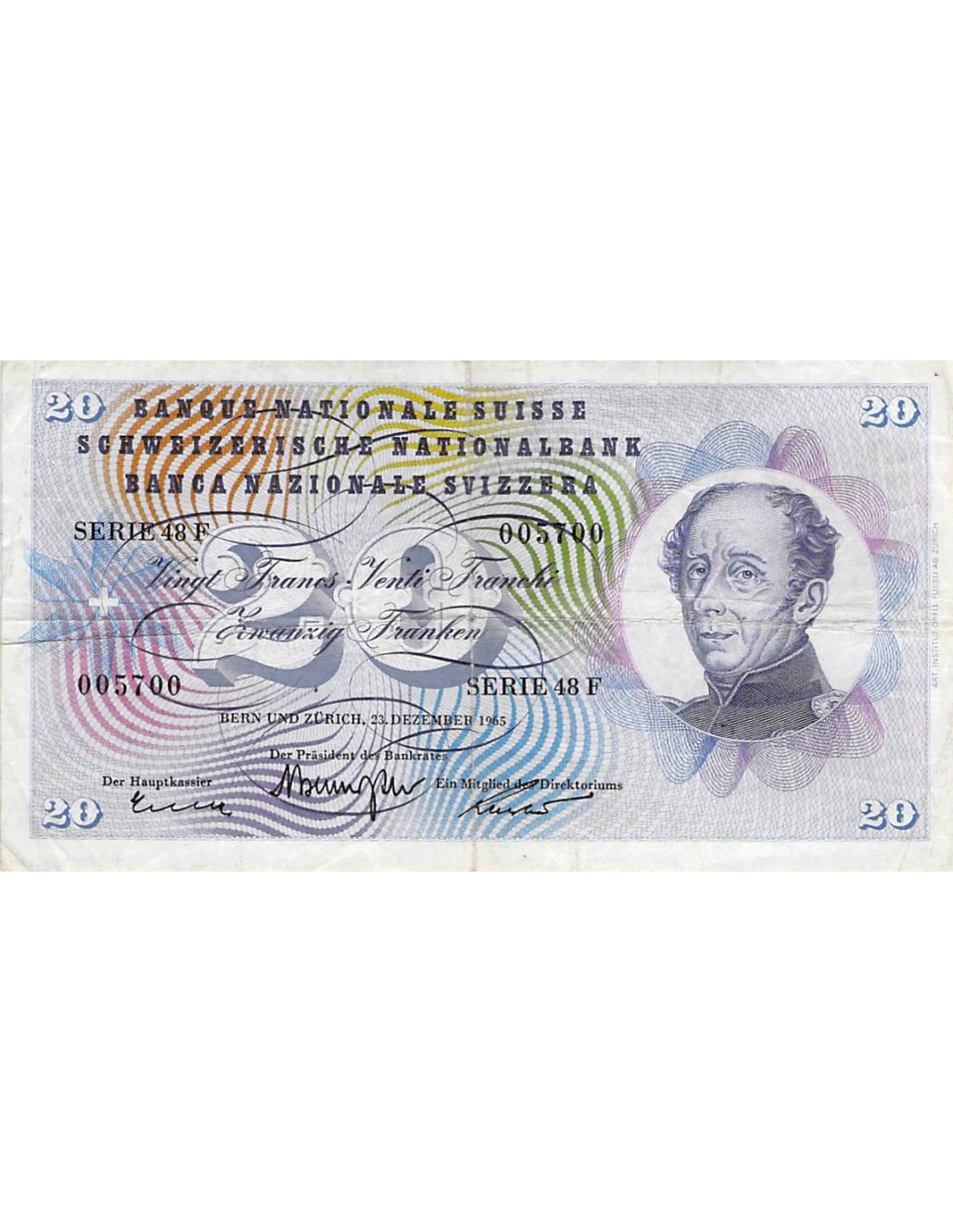 SUISSE, GENERAL DUFOUR - 20 FRANCS 23/12/1965 - TB+