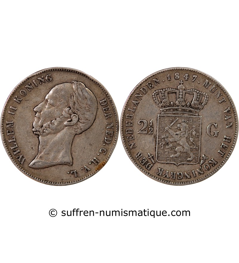 PAYS-BAS, WILLEM II - 2 1/2 GULDEN ARGENT 1847