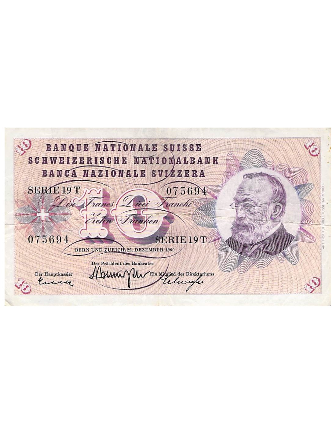 SUISSE, GOTTFRIED KELLER - 10 FRANCS 22/12/1960 - TB+