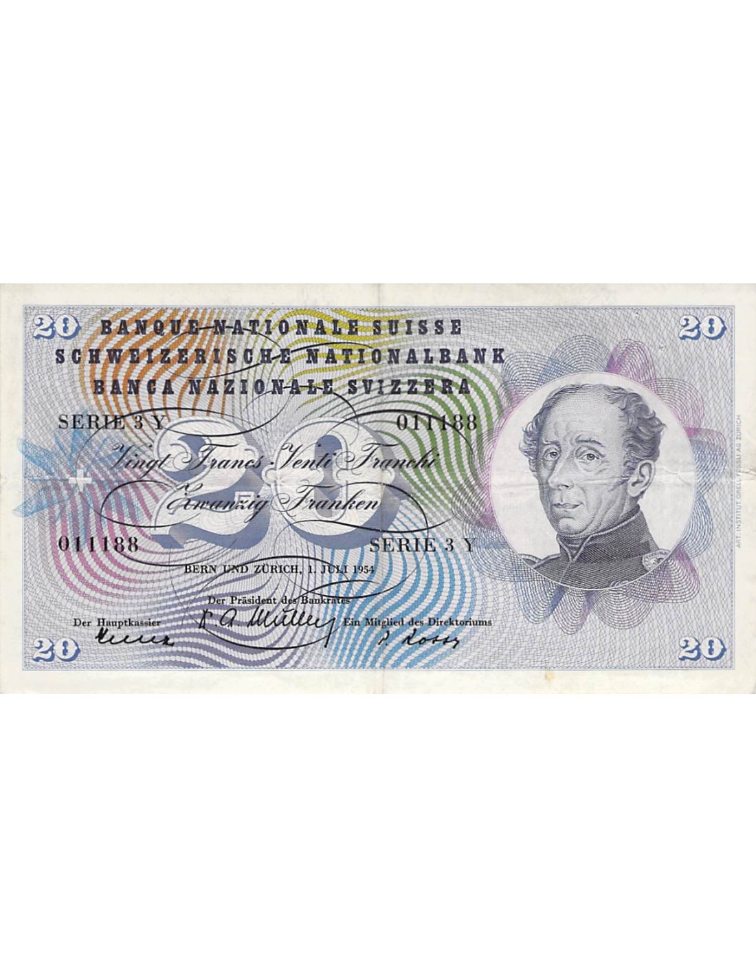 SUISSE, GENERAL DUFOUR - 20 FRANCS 01/07/1954 - TTB