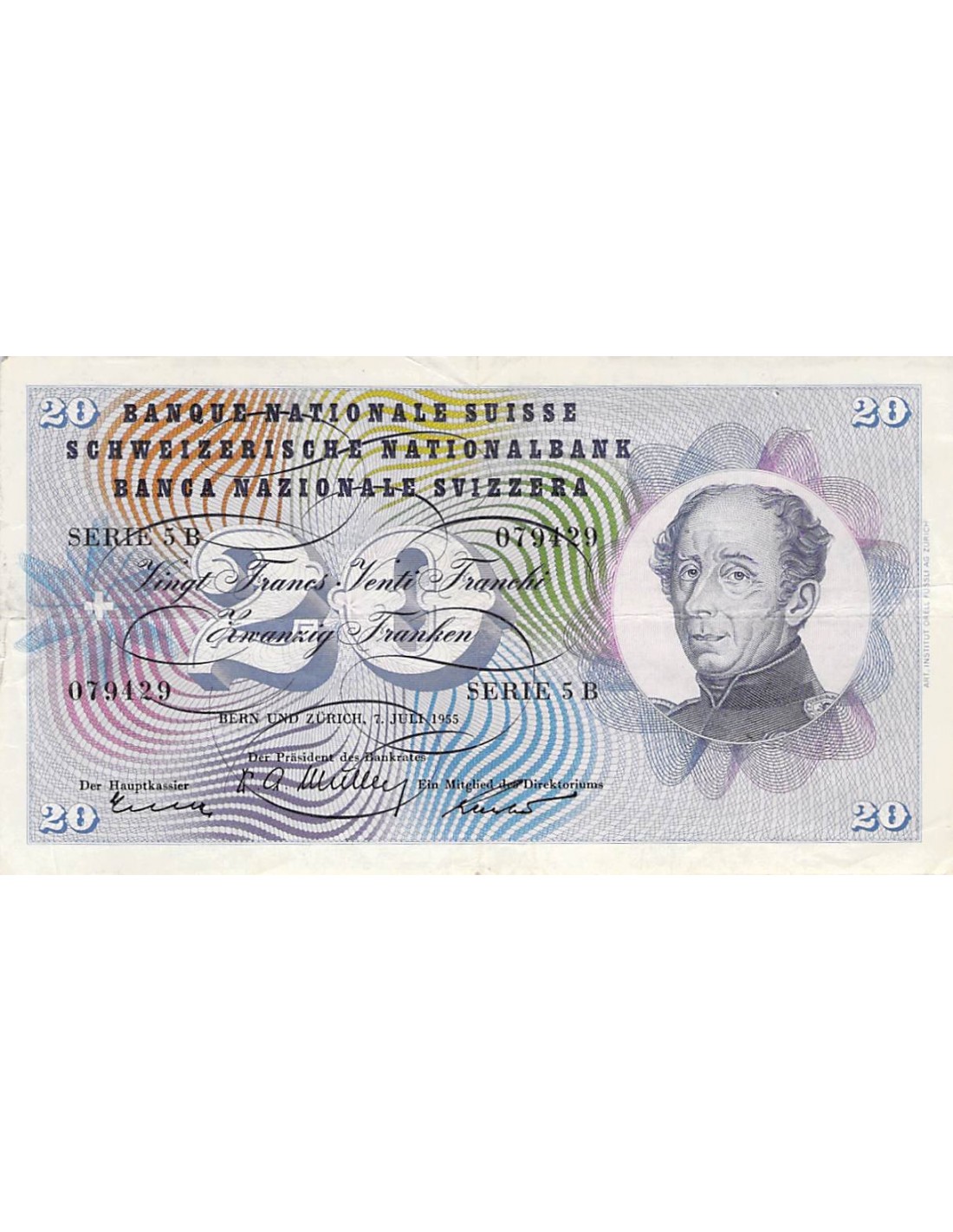 SUISSE, GENERAL DUFOUR - 20 FRANCS 07/07/1955 - PTTB