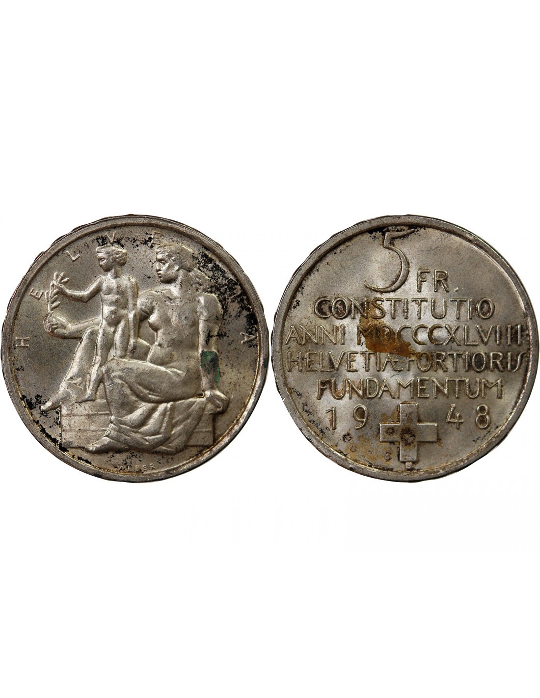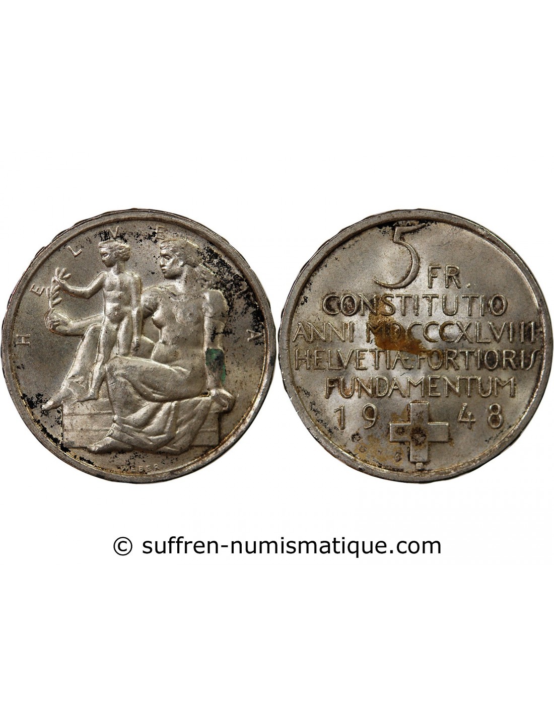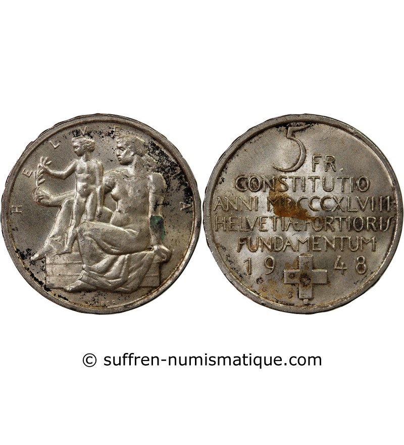 Suisse 5 Francs Argent, Helvetia assise - 1874 B. Bruxelles
