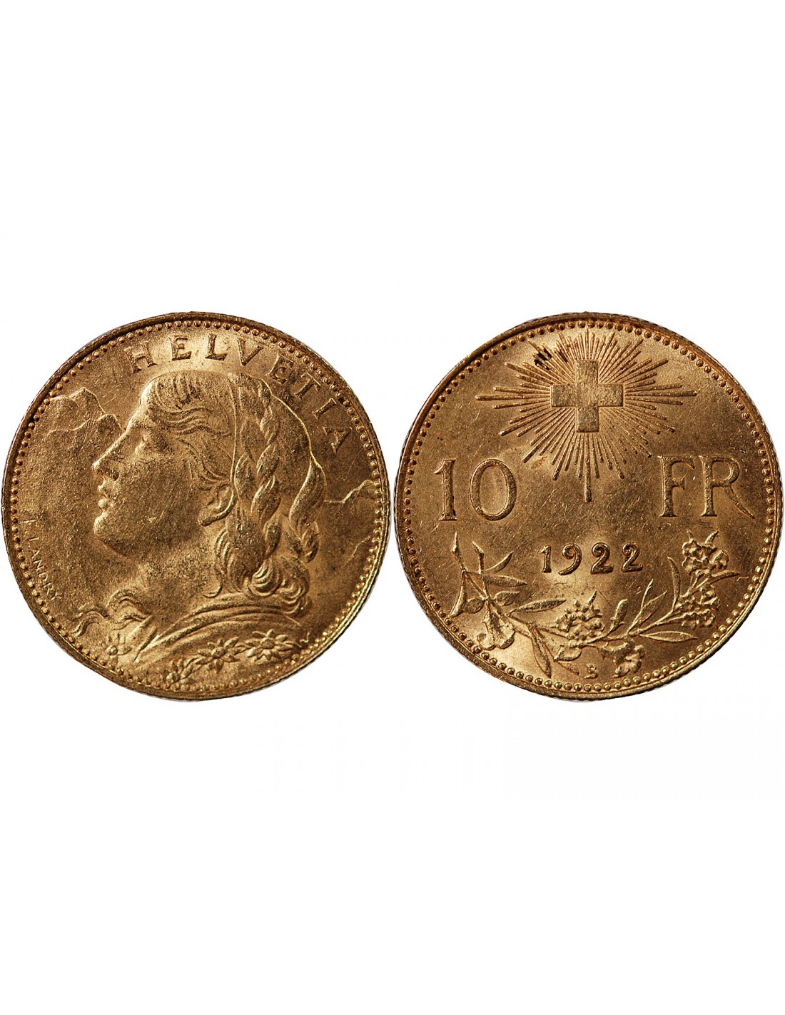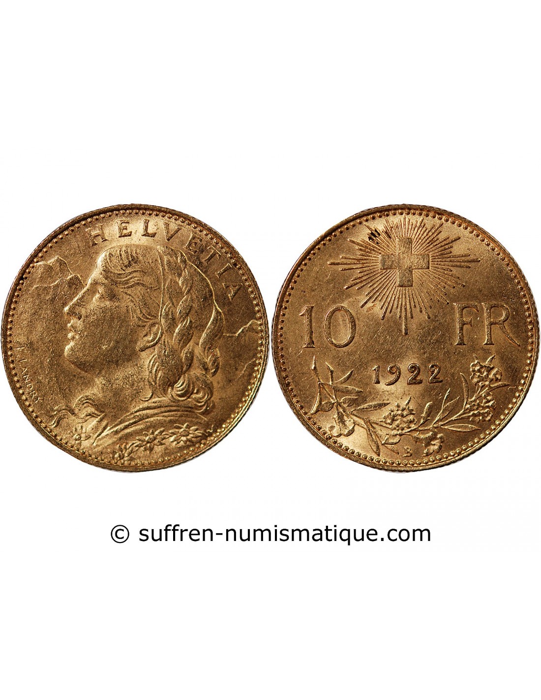 SUISSE, CONFEDERATION HELVETIQUE - 10 FRANCS OR 1922 B