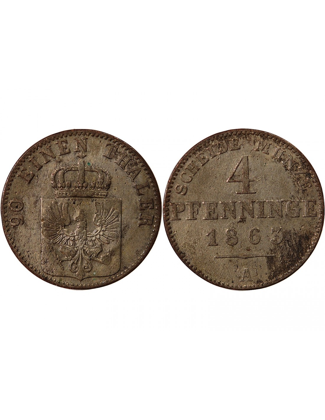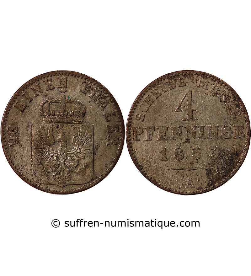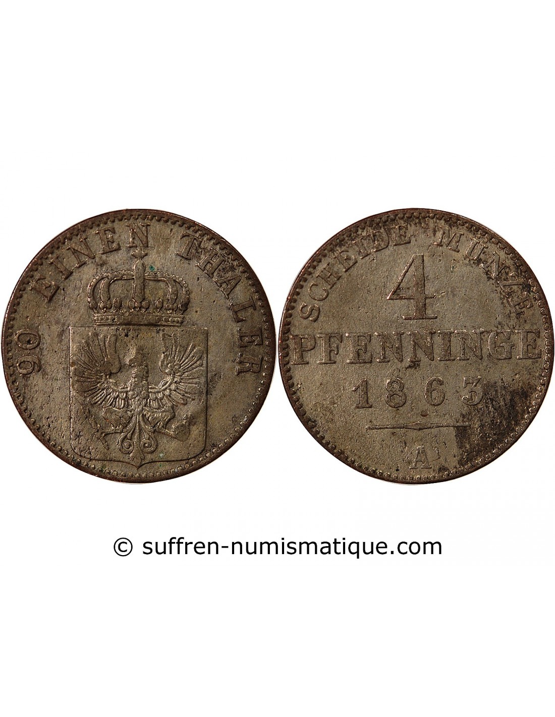 ALLEMAGNE, PRUSSE, WILHELM Ier - 4 PFENNINGE 1863 A BERLIN