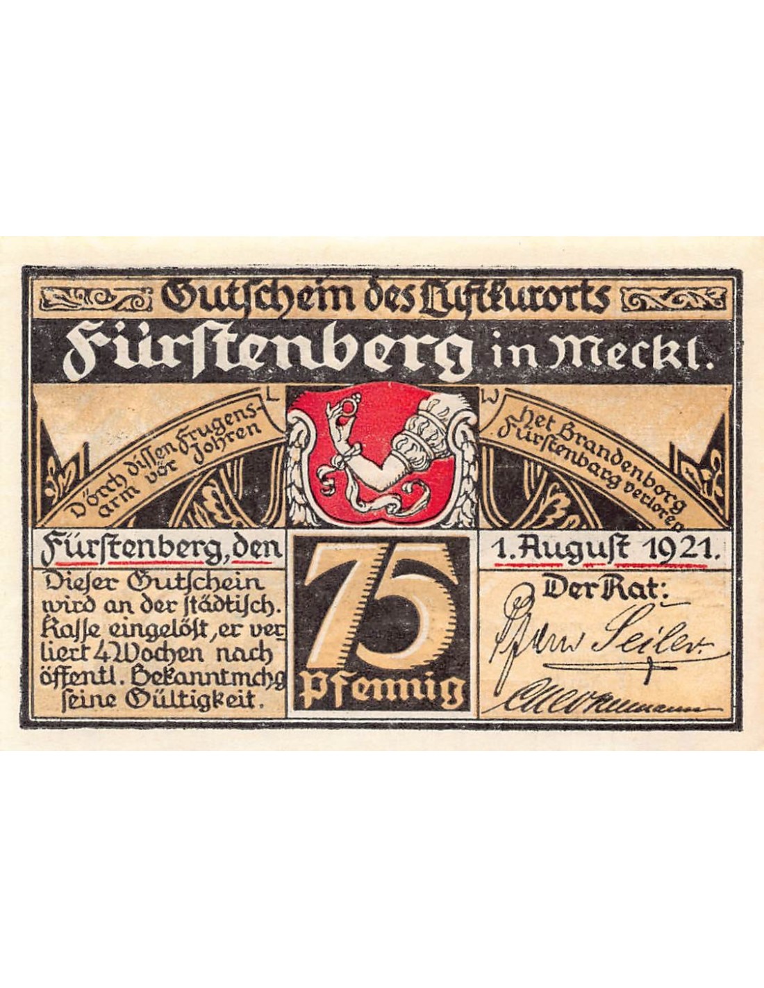 ALLEMAGNE, FÜRSTENBERG - 75 PFENNIG 1921