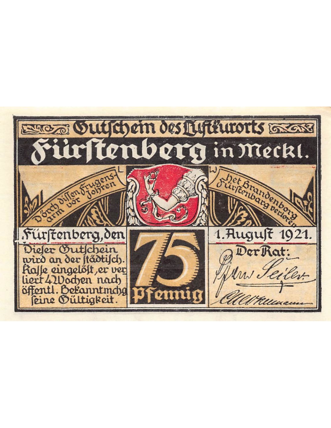 ALLEMAGNE, FÜRSTENBERG - 75 PFENNIG 1921