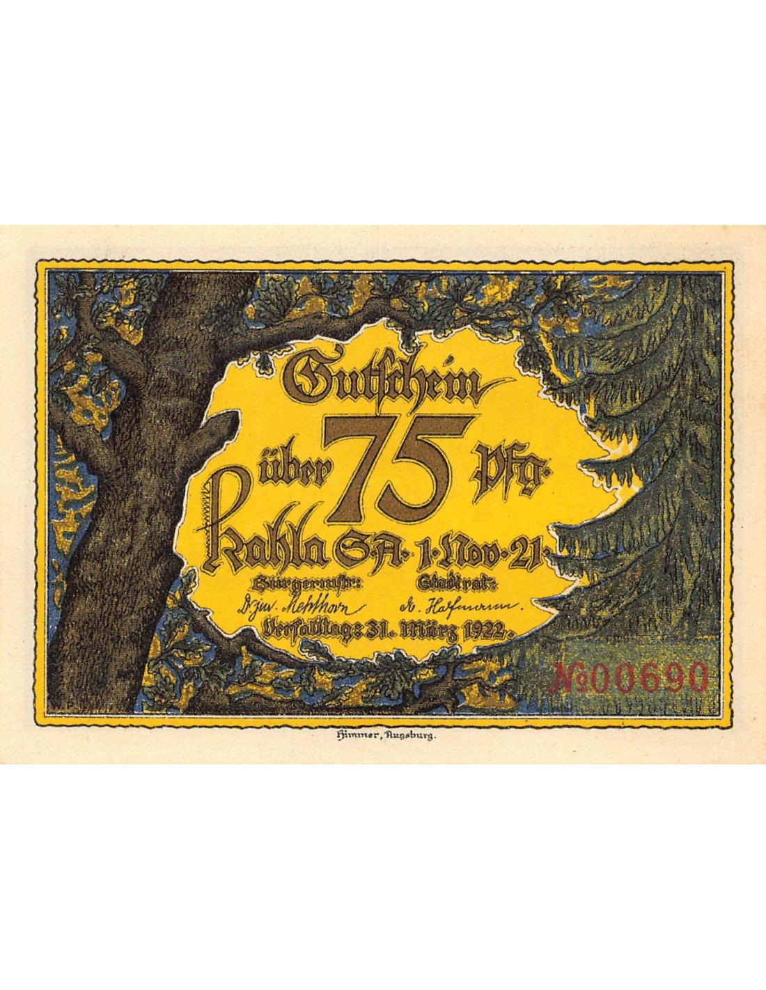 ALLEMAGNE, KAHLA - 75 PFENNIG 1921