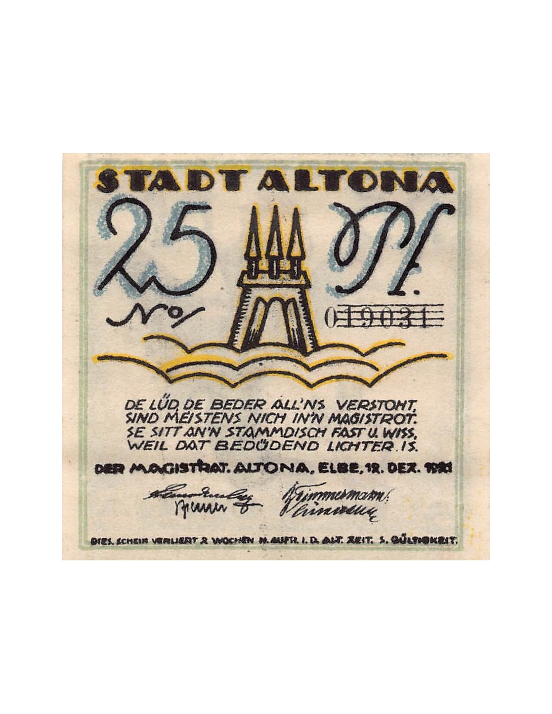 ALLEMAGNE, ALTONA - 25 PFENNIG 1921