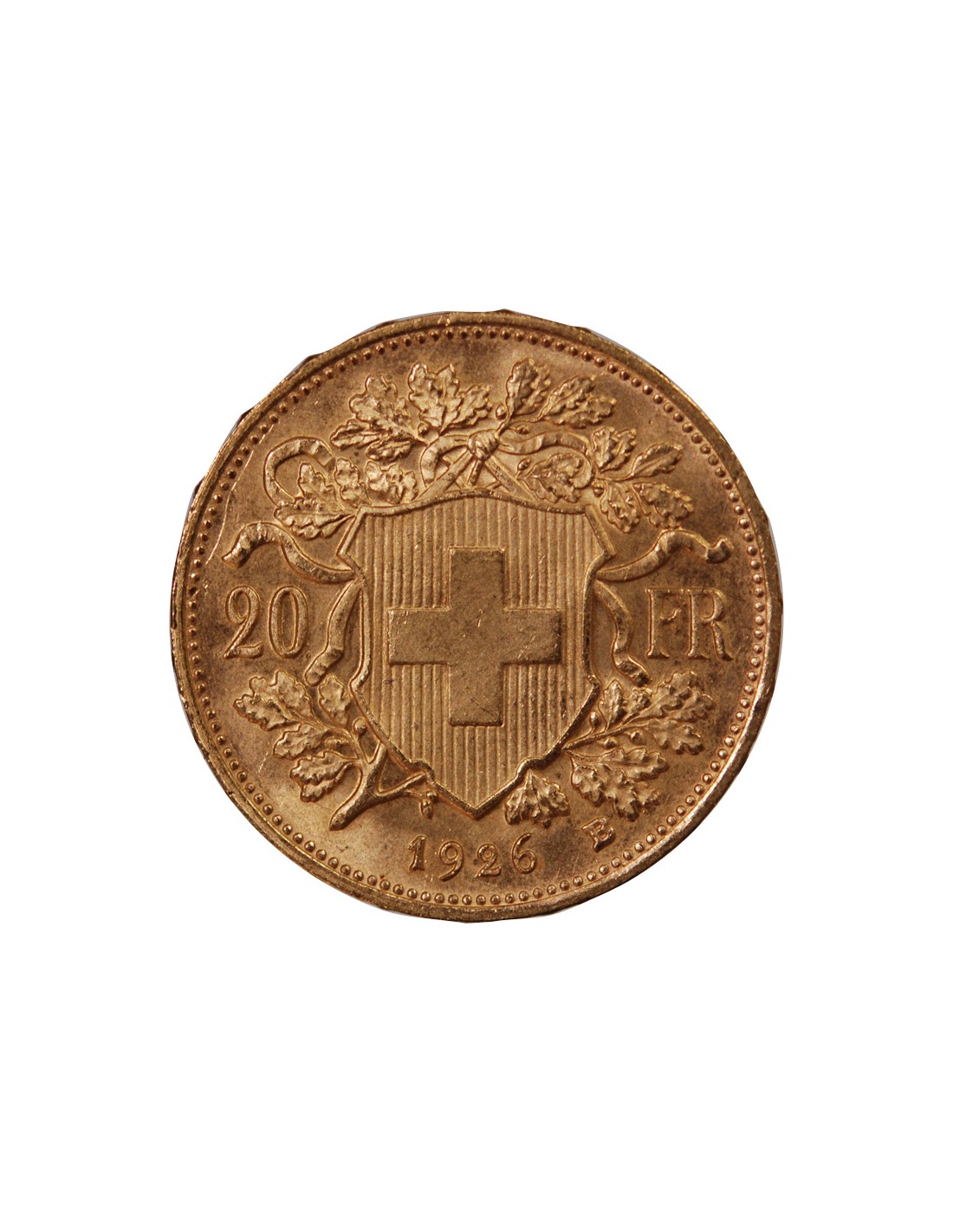 Date la plus rare, seulement 50 000 exemplaires pour cette 20 francs suisse de 1926.