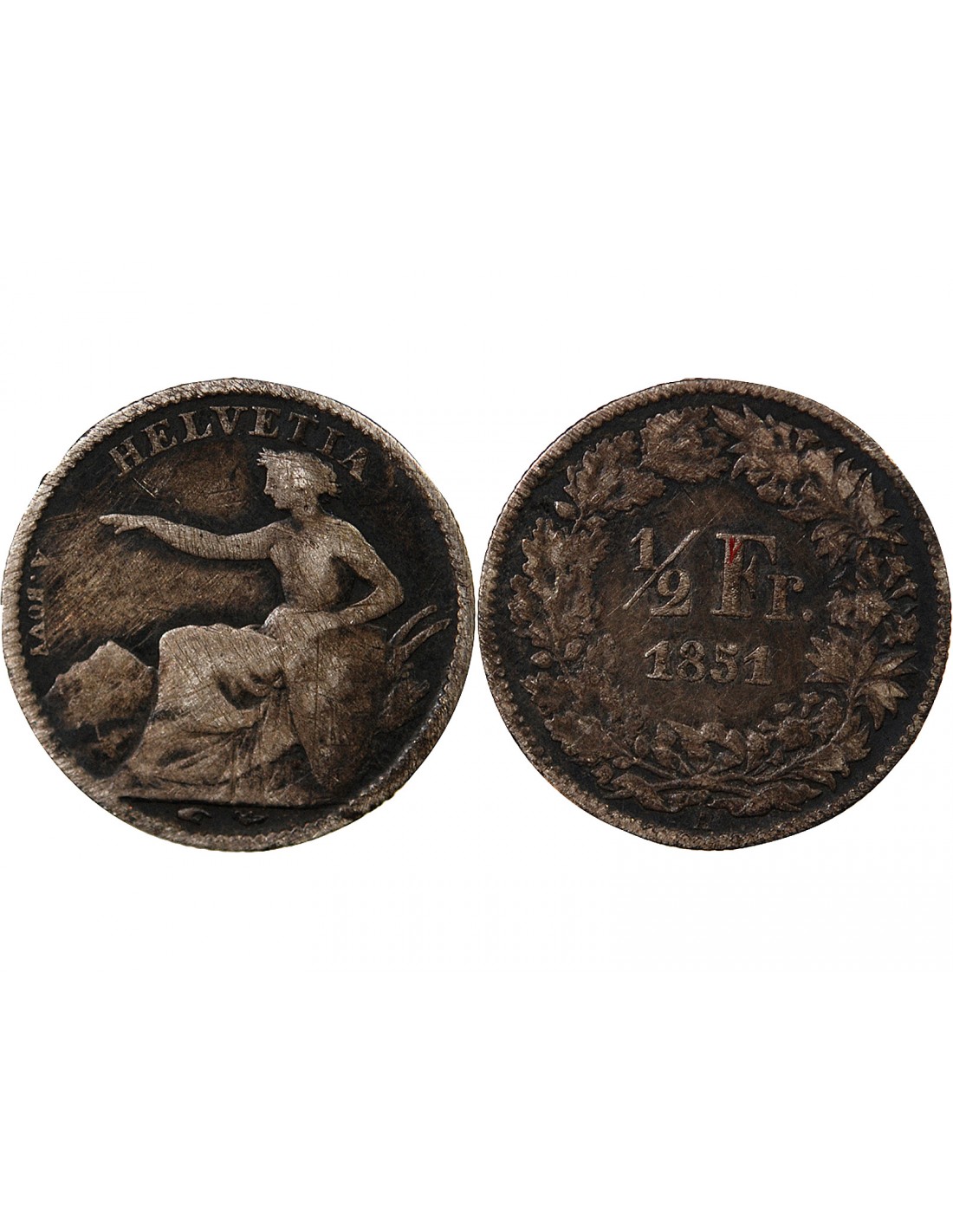 SUISSE, HELVETIA ASSISE - 1/2 FRANC ARGENT 1851 A PARIS