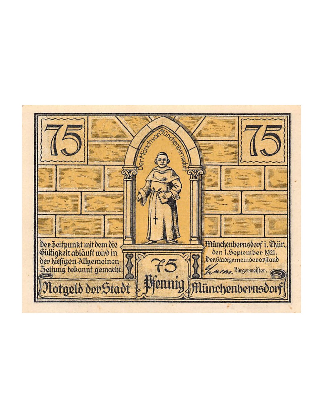 ALLEMAGNE, MÜNCHENBERNSDORF - 75 PFENNIG 1921