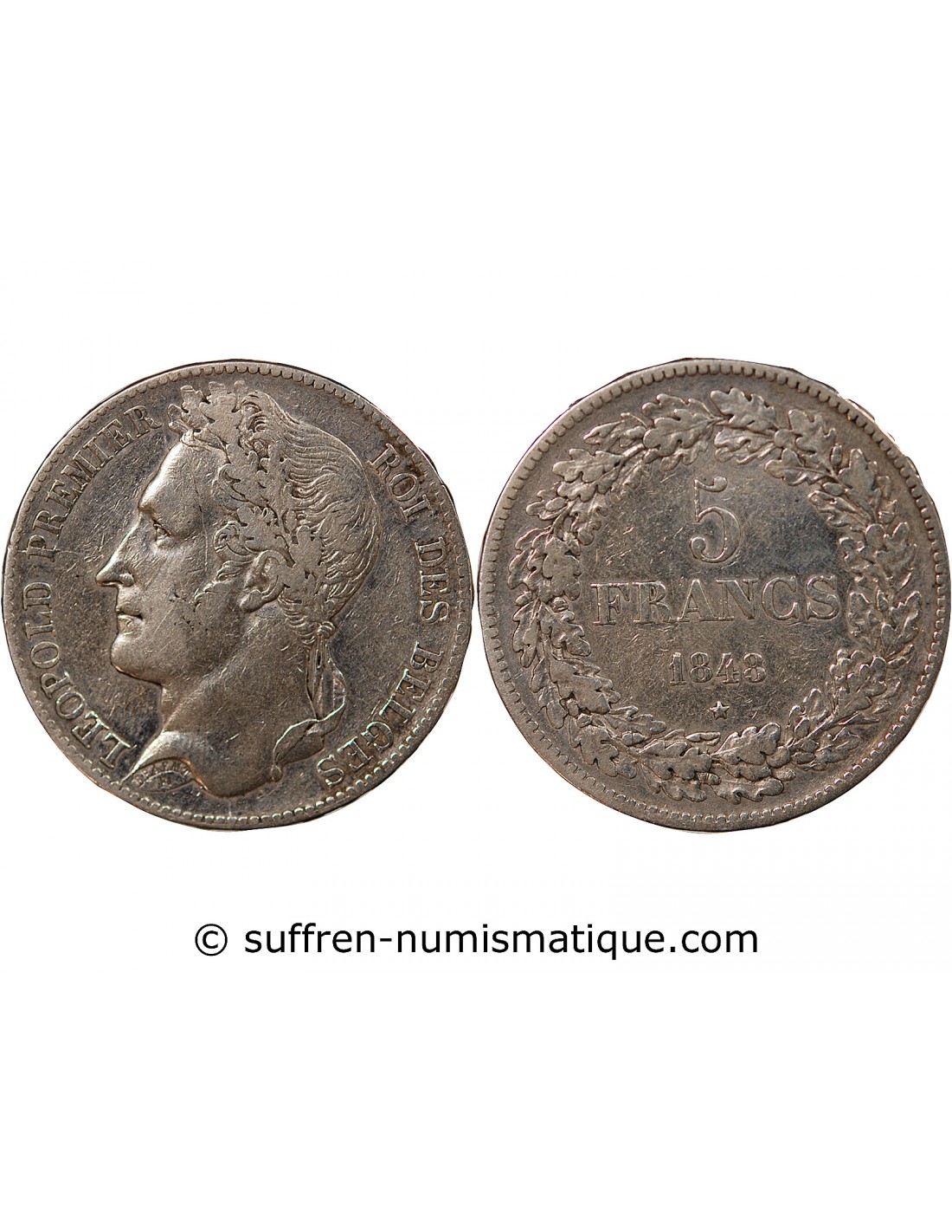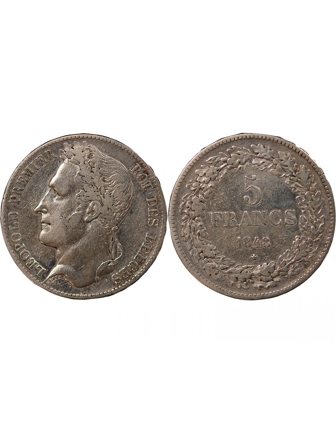BELGIQUE, LEOPOLD Ier - 5 FRANCS ARGENT 1848