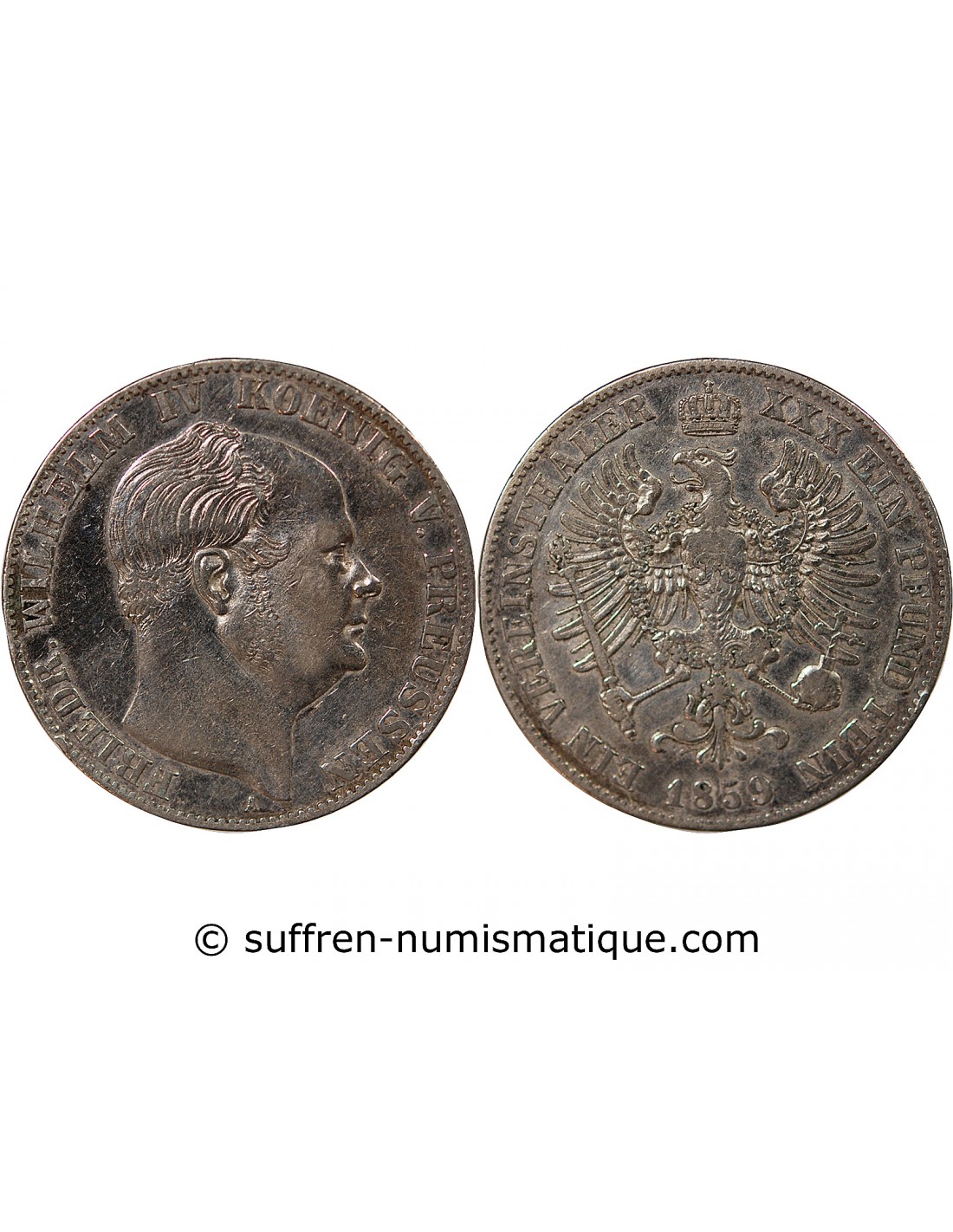 ALLEMAGNE, PRUSSE, FREDERIC GUILLAUME IV - VEREINSTHALER ARGENT - 1859 A BERLIN