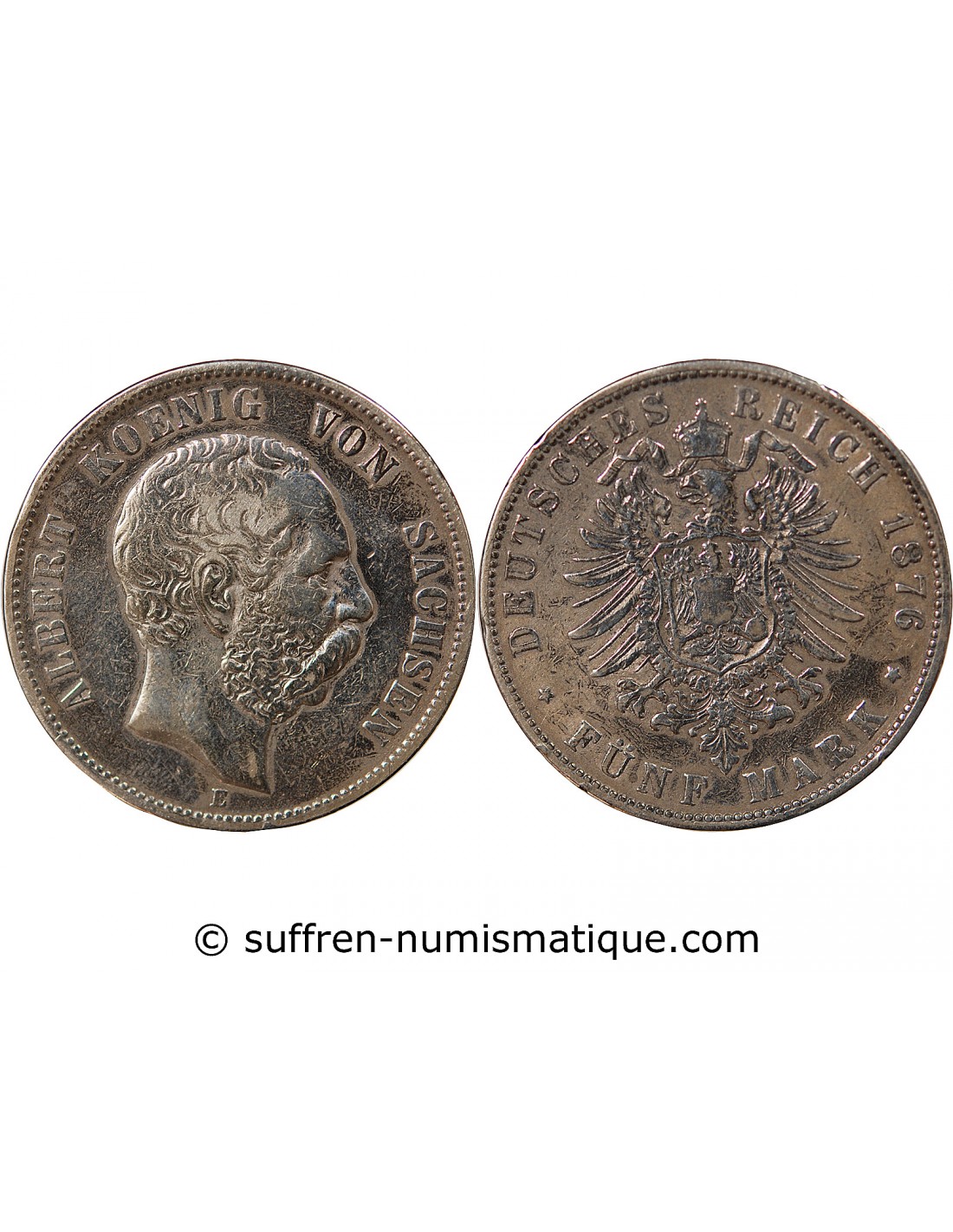 ALLEMAGNE, SAXE, ALBERT I - 5 MARK ARGENT - 1876 E MULDENHÜTTEN
