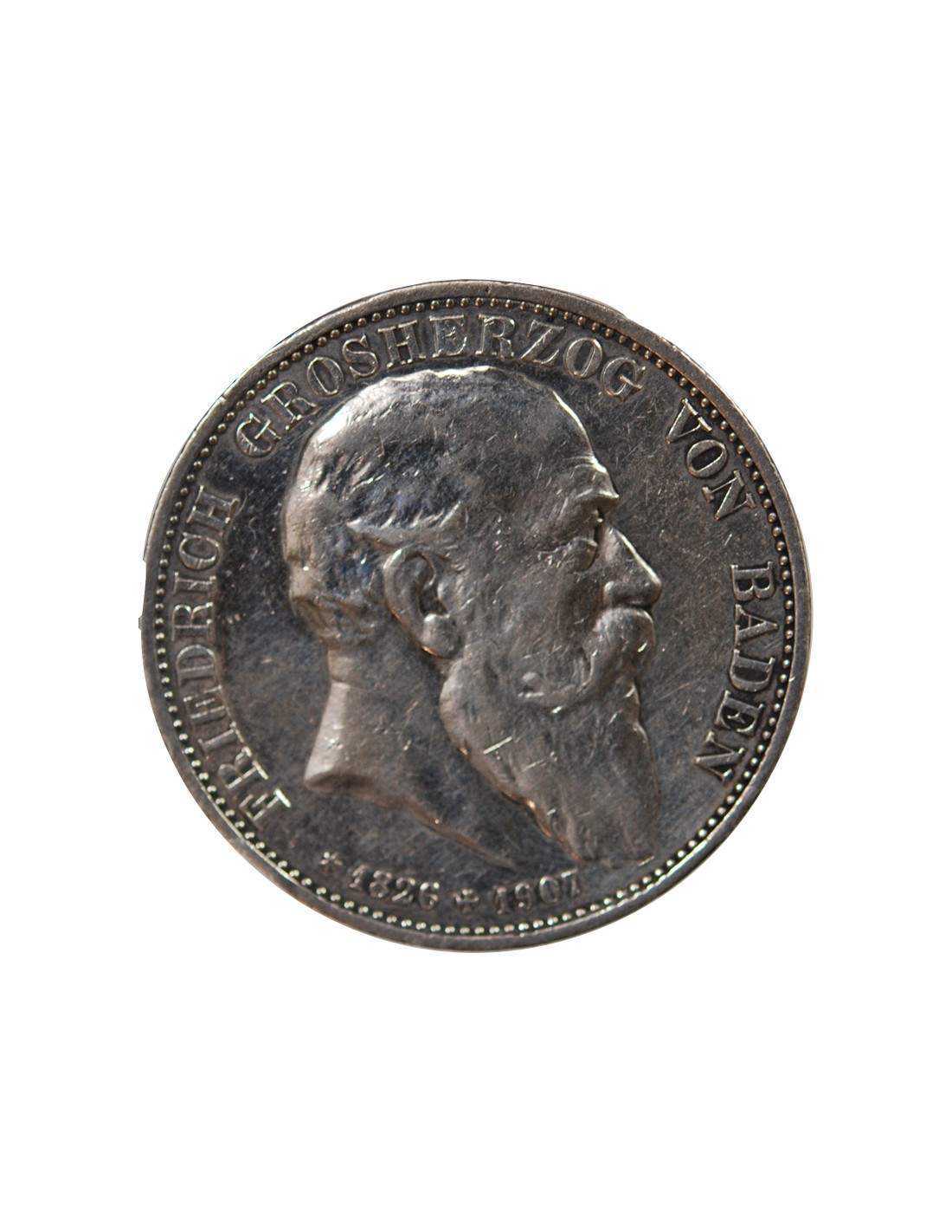 ALLEMAGNE, BADE, FREDERIC I - 5 MARK ARGENT, MORT DU DUC - 1907 KARLSRUHE