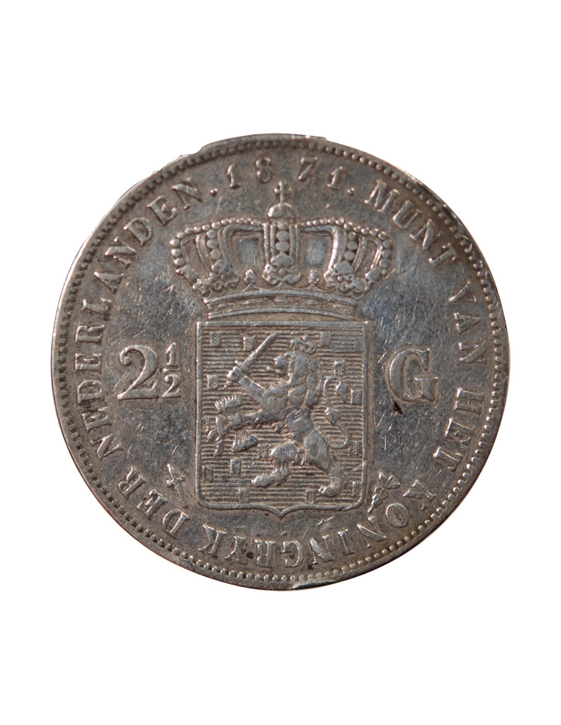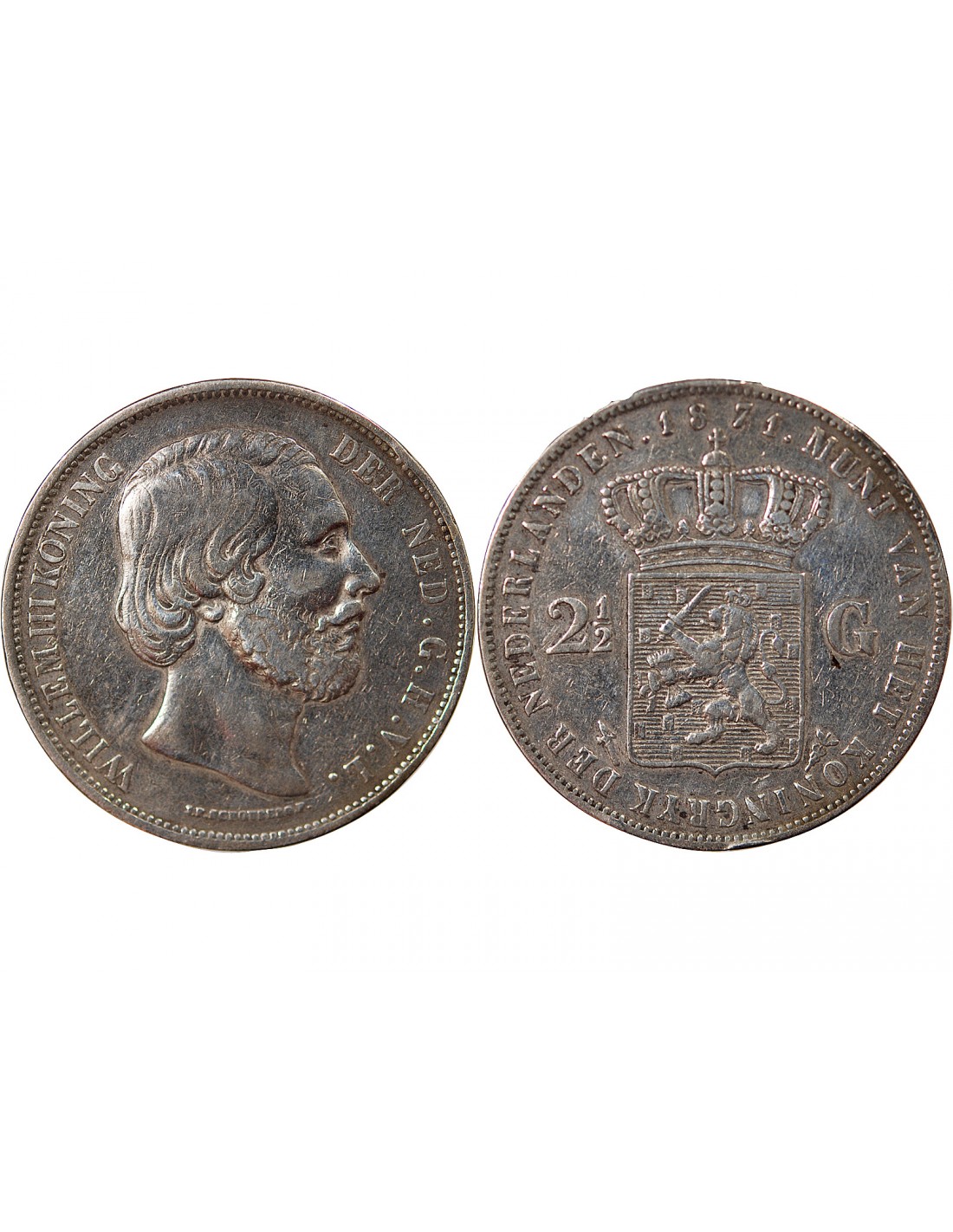PAYS-BAS, GUILLAUME III - 2 1/2 GULDEN ARGENT 1871