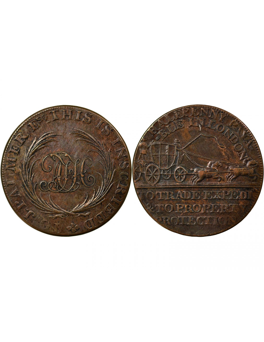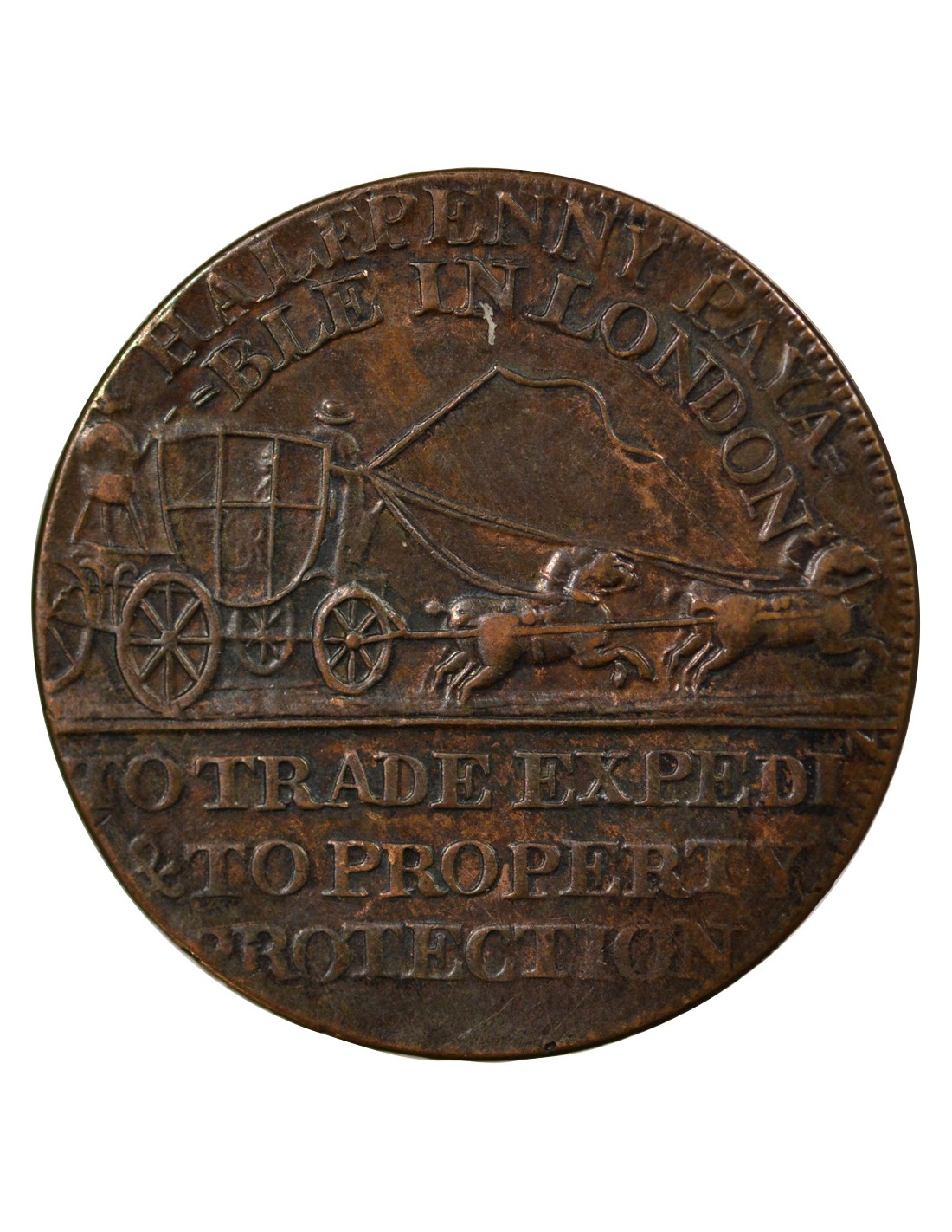 Avers : HALFPENNY PAYA- / -BLE IN LONDON / TO TRADE EXEPDI / & TO PROPERTY / PROTECTION