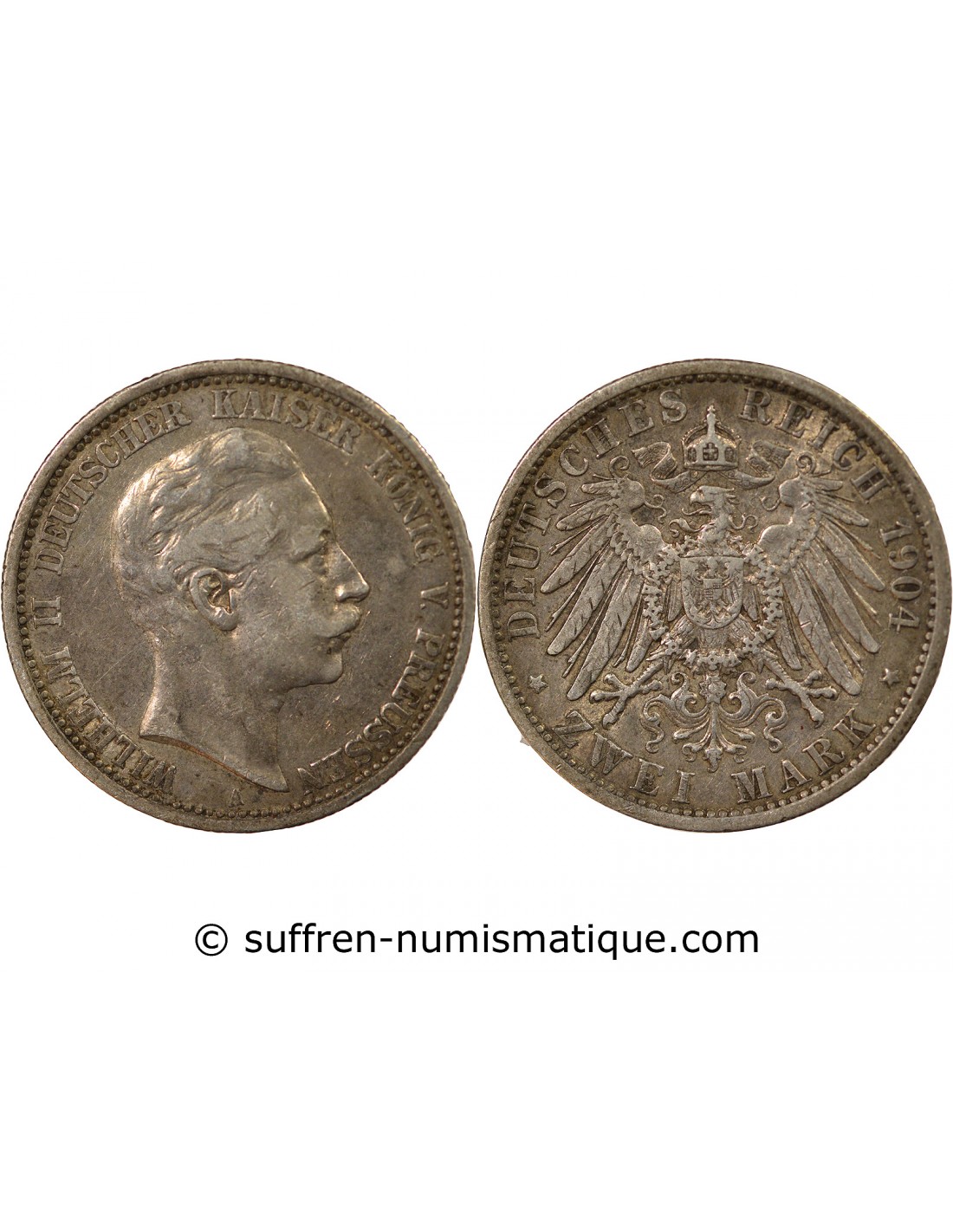 ALLEMAGNE, PRUSSE, GUILLAUME II - 2 MARK ARGENT 1904 A BERLIN