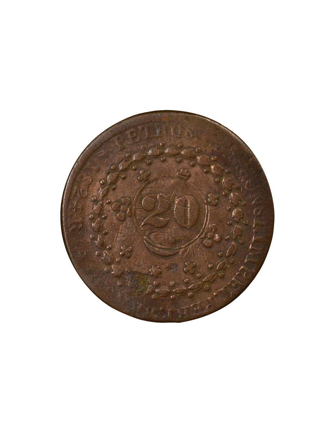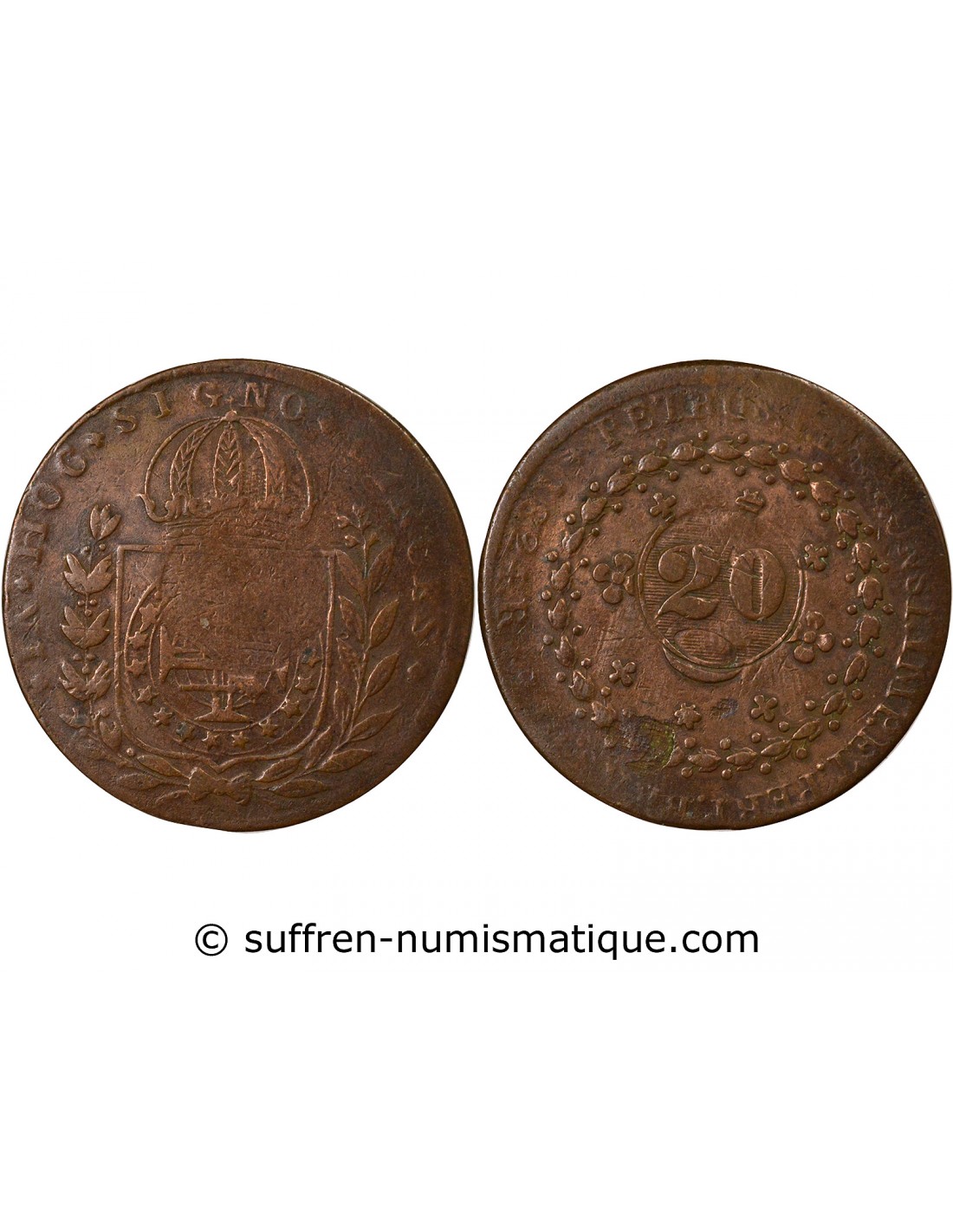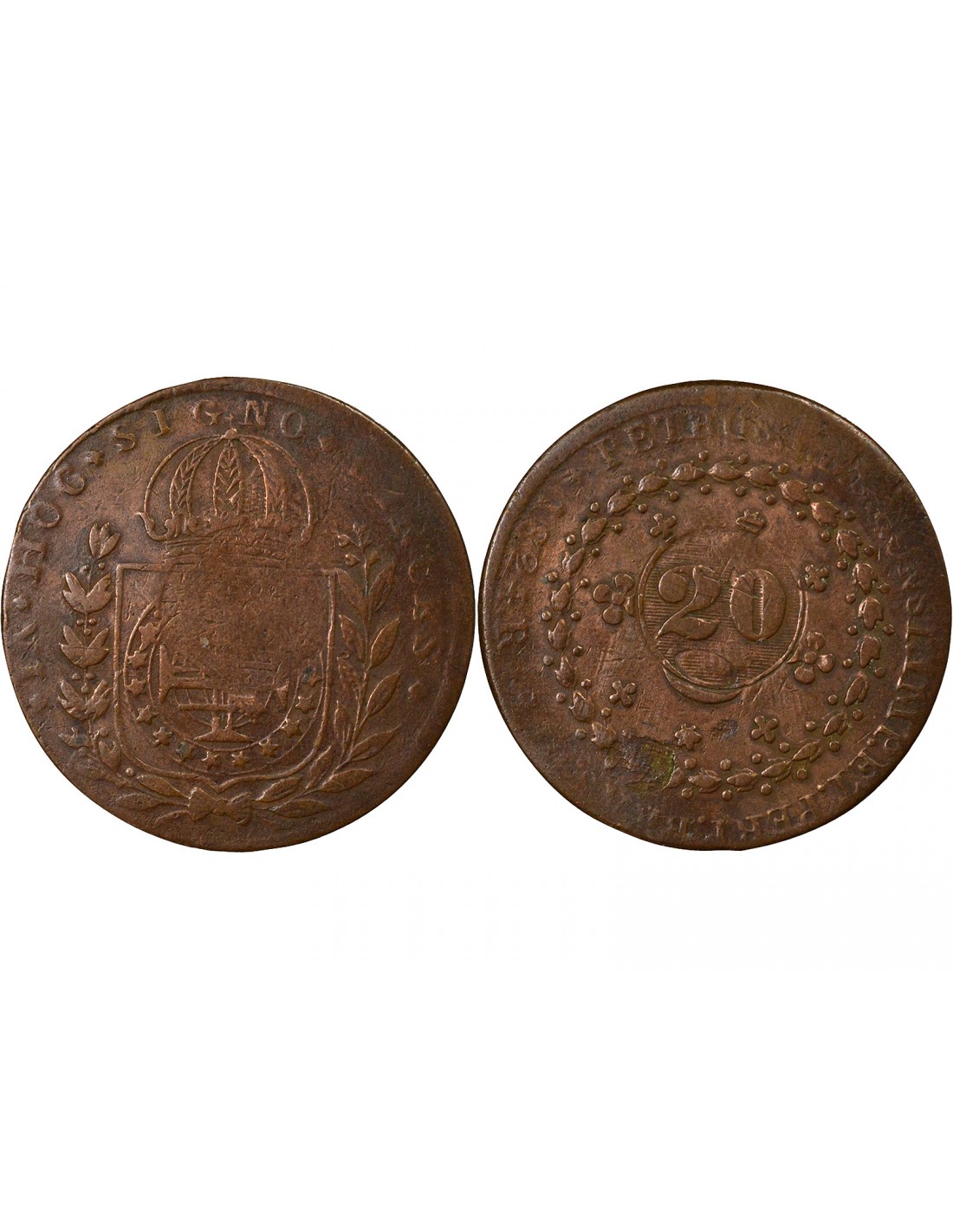 Contremarque de 1835 sur 40 Réis de Pierre I frappé en 1824 à Rio de Janeiro.
