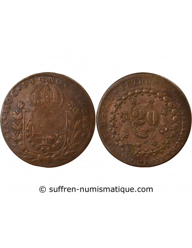 BRESIL, PEDRO II - 20 REIS, CONTREMARQUE 1835 SUR 40 REIS