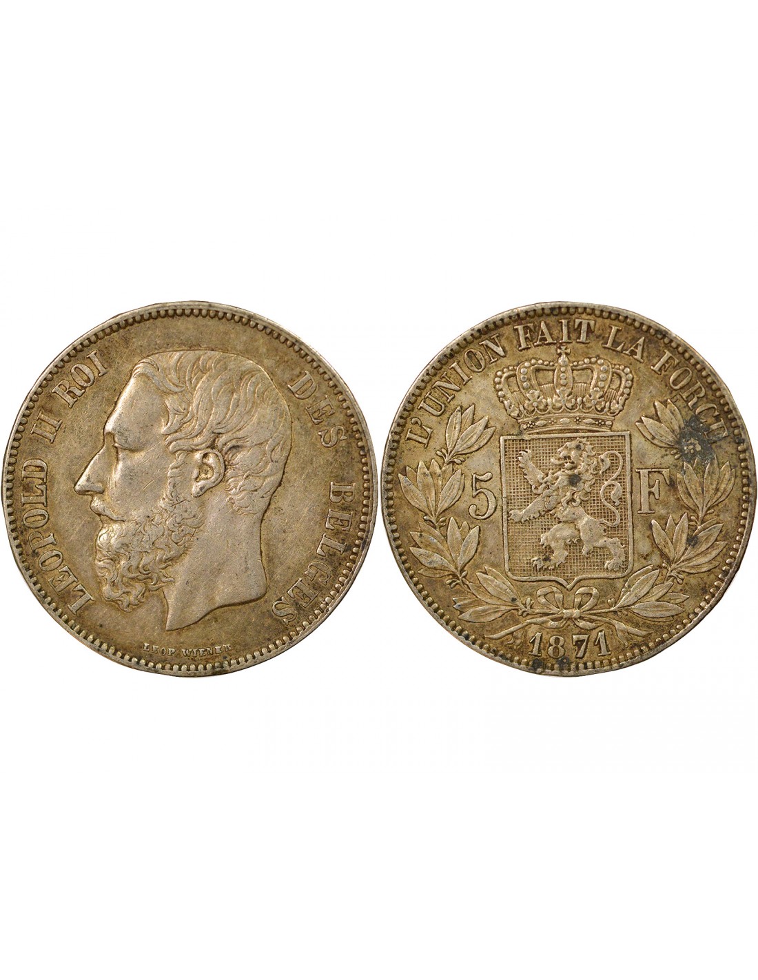 Belgique Léopold II - 5 Francs Argent - 1871 Bruxelles
