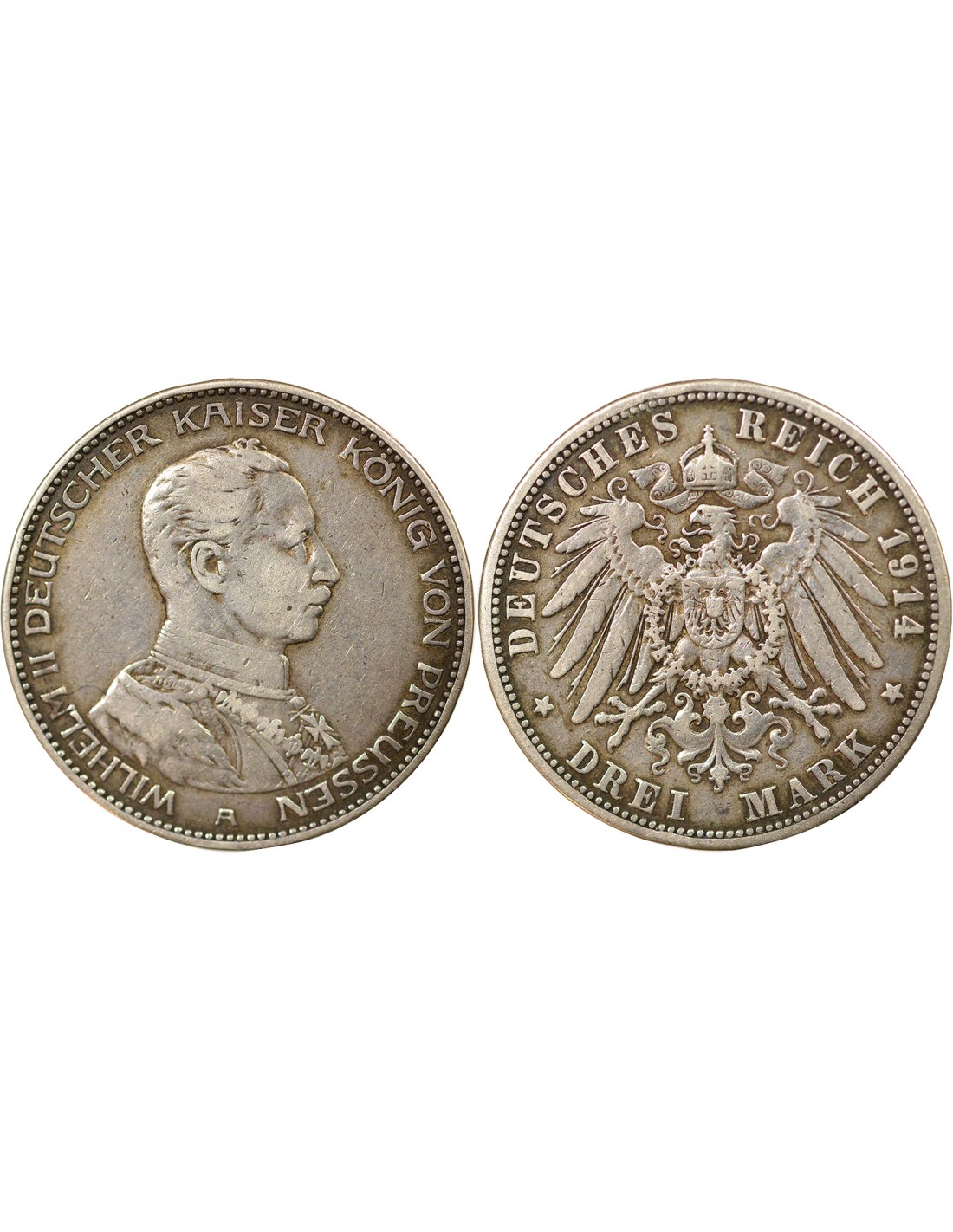 Etats Allemands (Prusse) Guillaume II - 3 Mark Argent - 1914 A Berlin