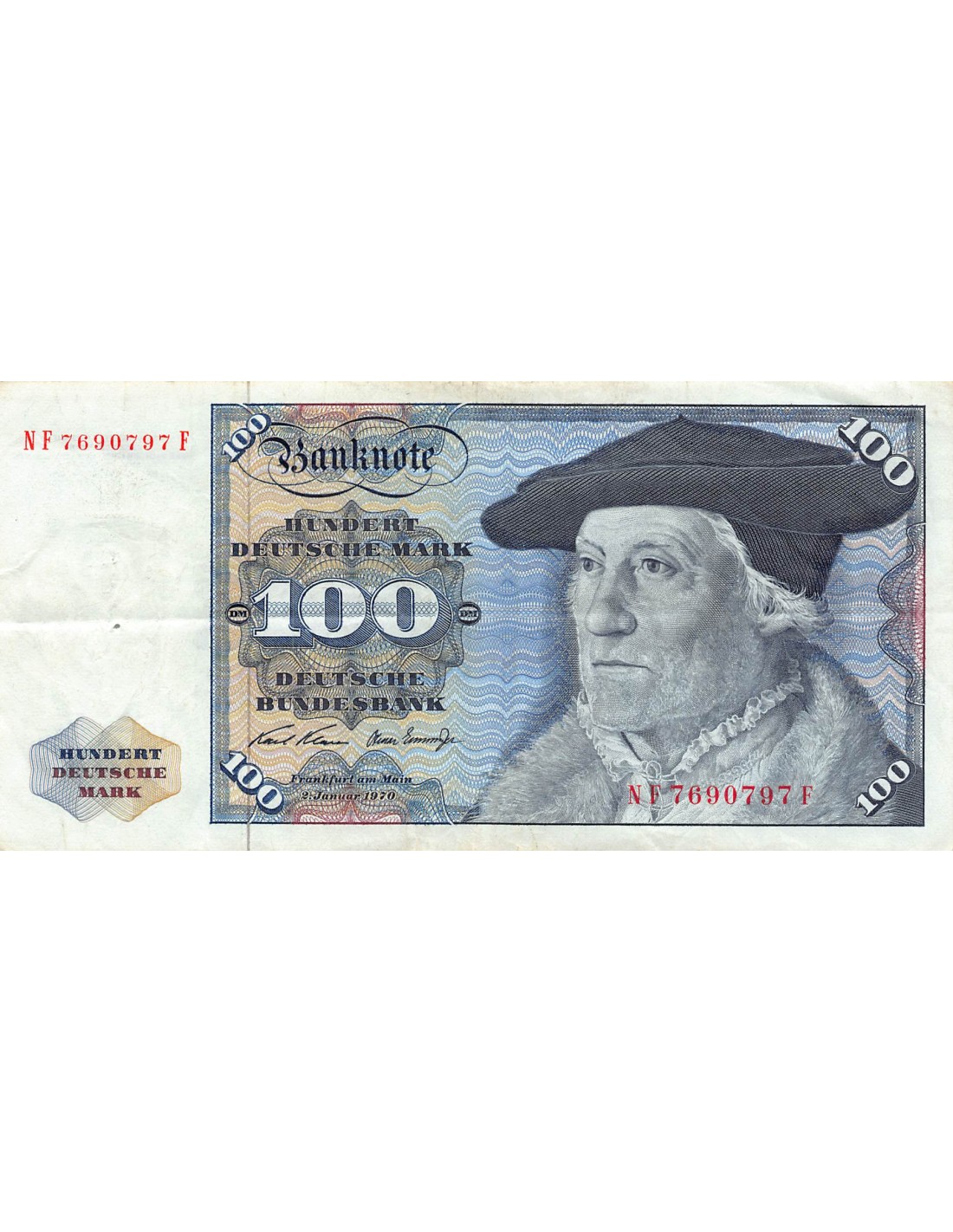 Le billet de 100 Deutsche Mark de 1980 fait partie d'une série de billets émis par la Deutsche Bundesbank, la banque centrale de la RFA. Ces billets ont circulé jusqu'à l'introduction de l'euro en 2002.