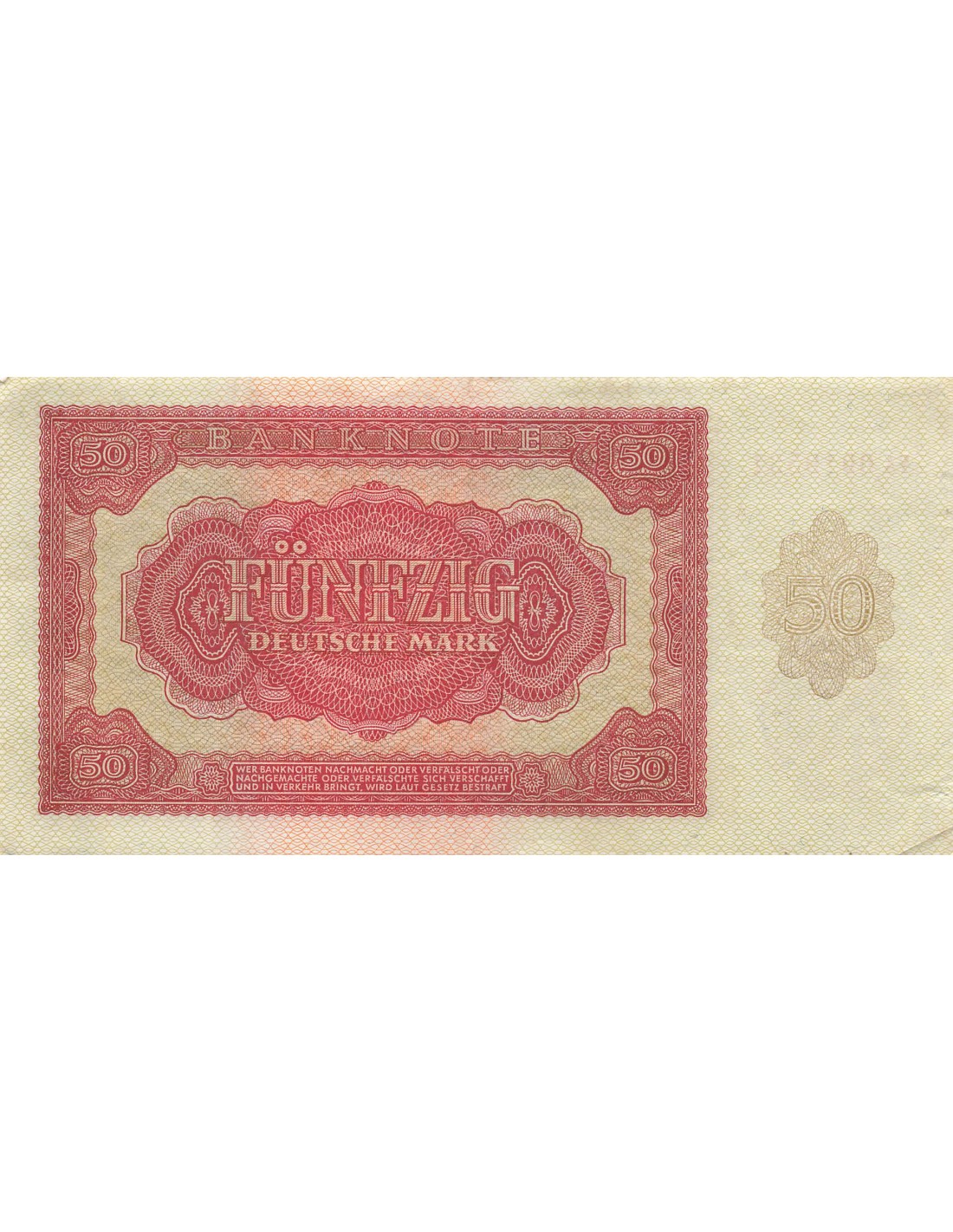 Vendu Europe de l'Ouest Allemagne ALLEMAGNE TERRITOIRES OCCUPES - 50 MARK 1940 / 1945 SUFFREN sf_19893 25,00 € épinglages, plis, salissures, petites coupures en marge View