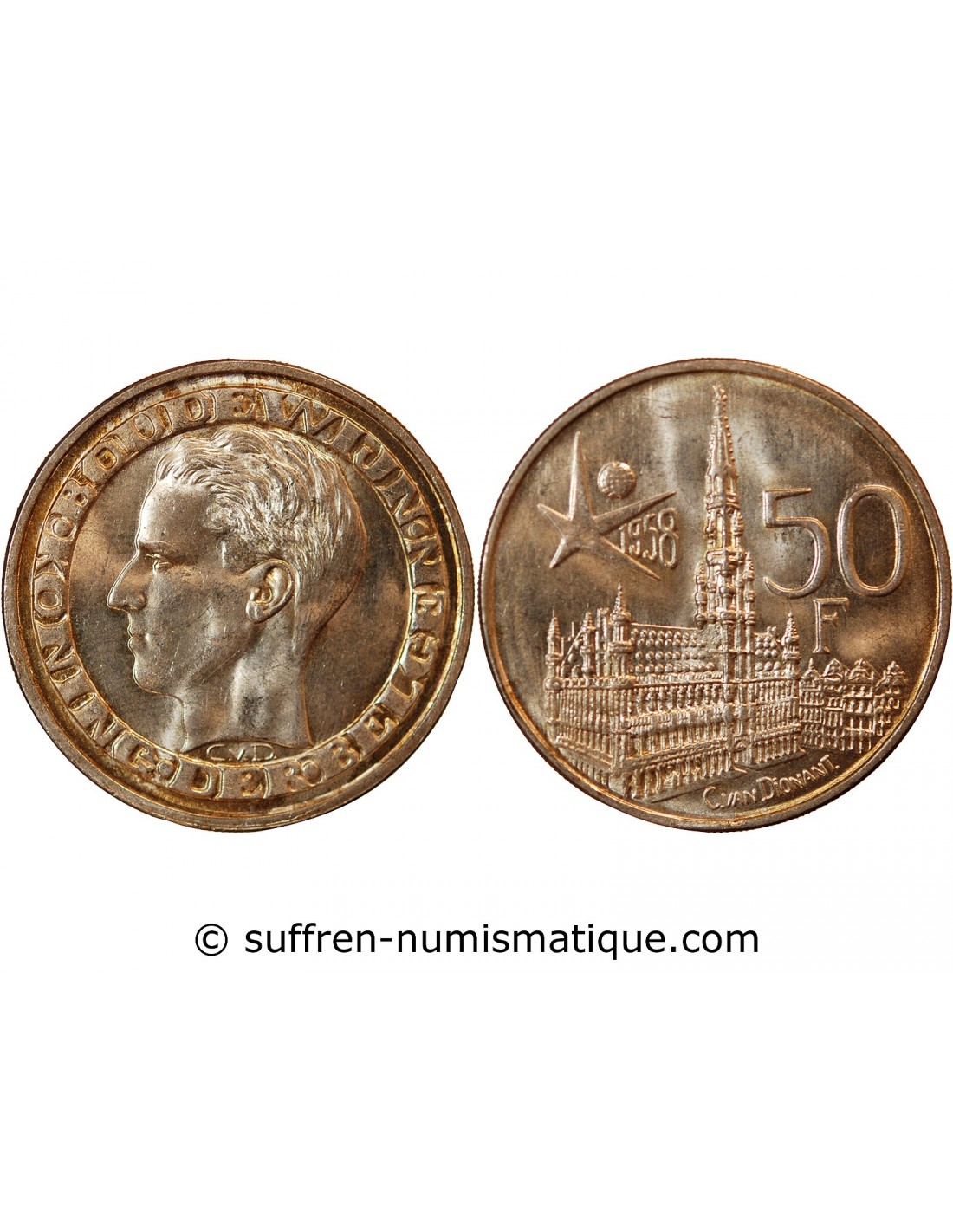 BELGIQUE, BAUDOUIN - 50 FRANCS ARGENT 1958 Exposition Universelle