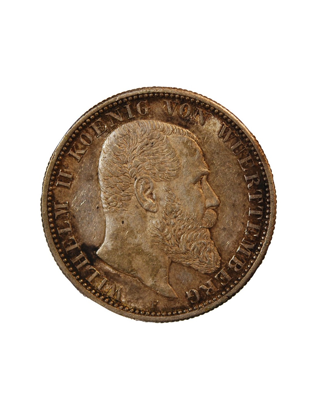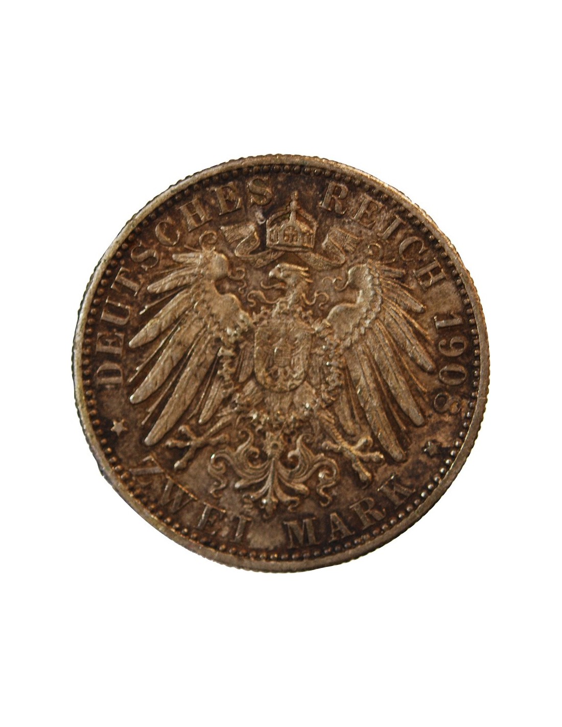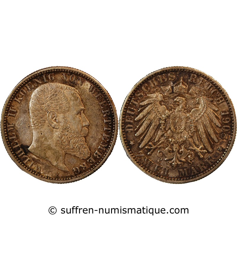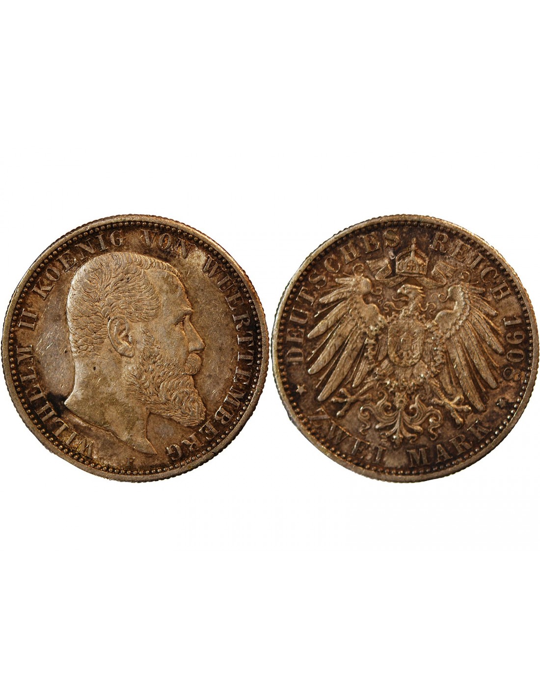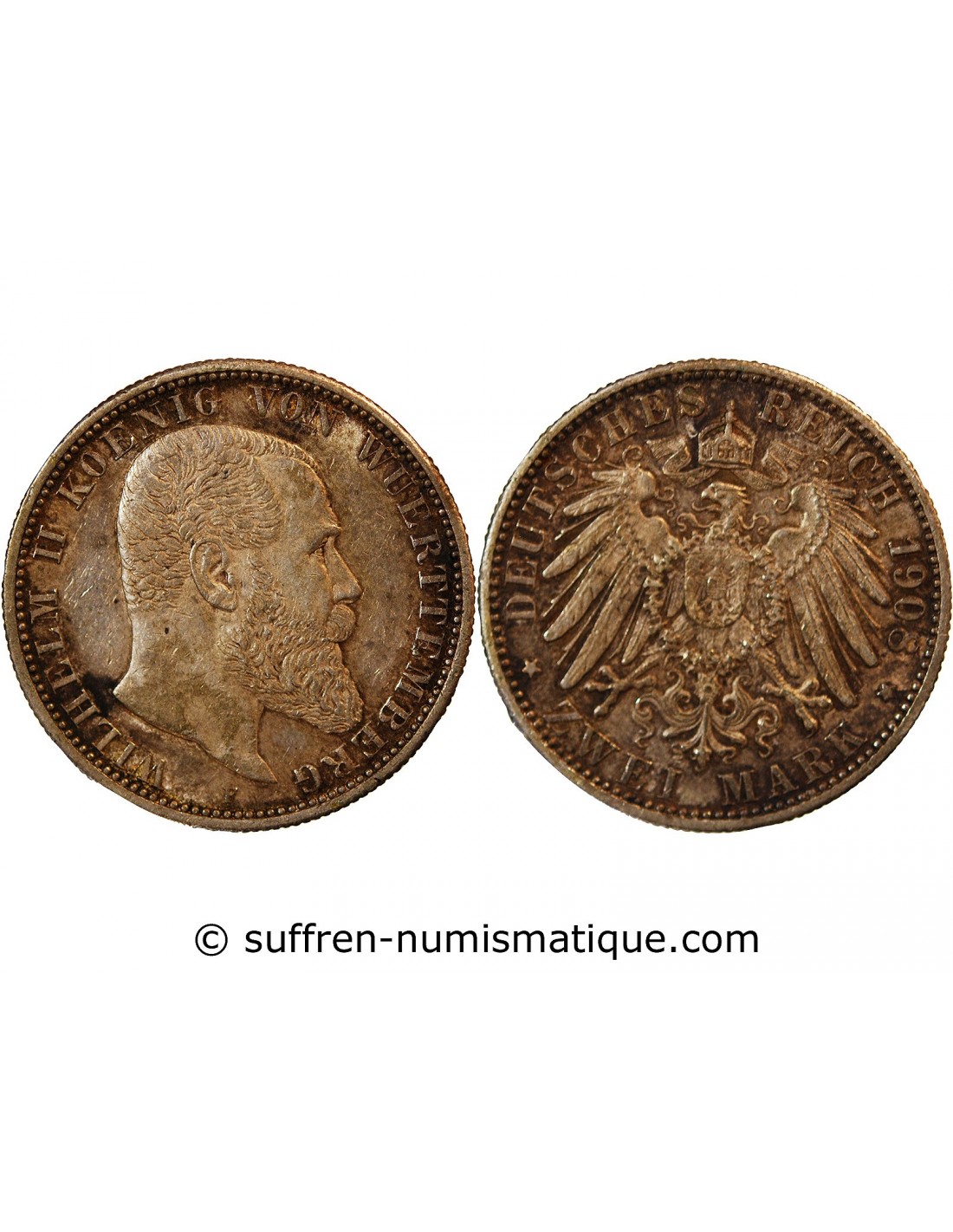 ALLEMAGNE, WUERTTEMBERG, WILHELM II - 2 MARK ARGENT 1908 F