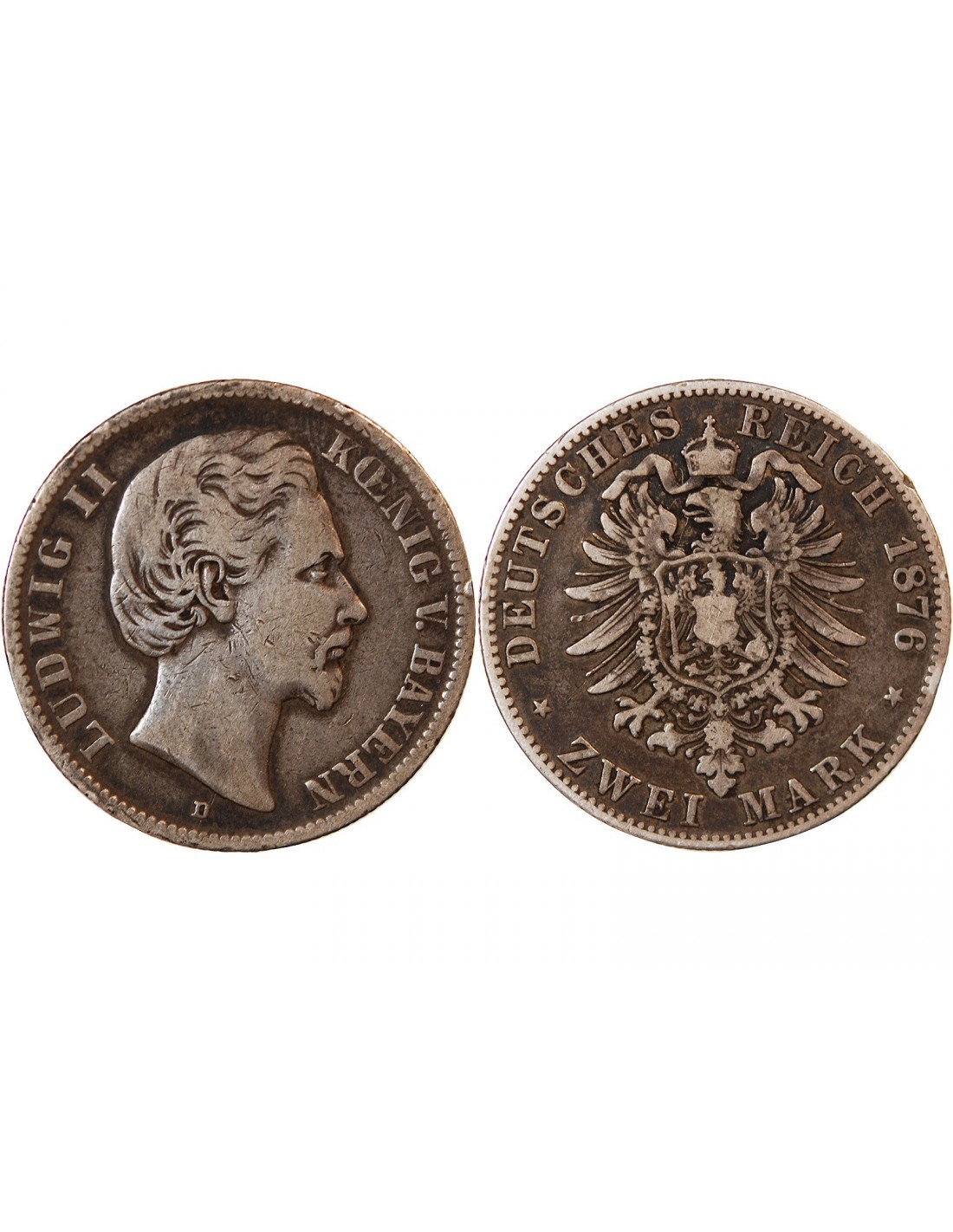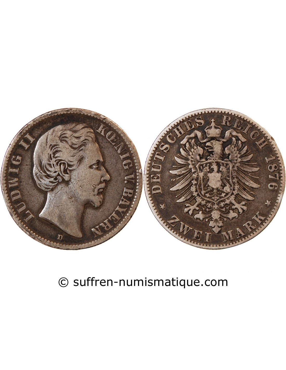 ALLEMAGNE, BAVIÈRE, LUDWIG II - 2 MARK ARGENT 1876 D MUNICH