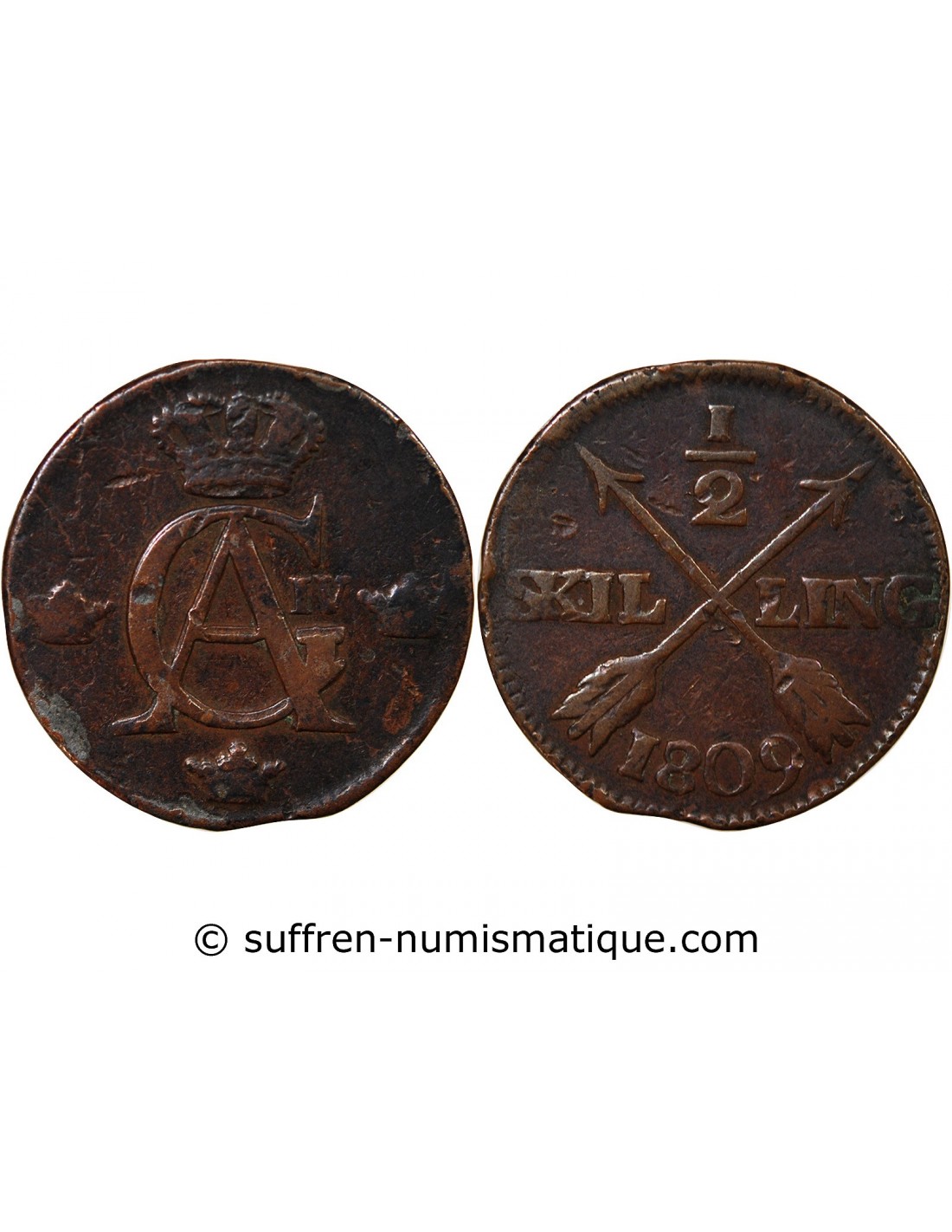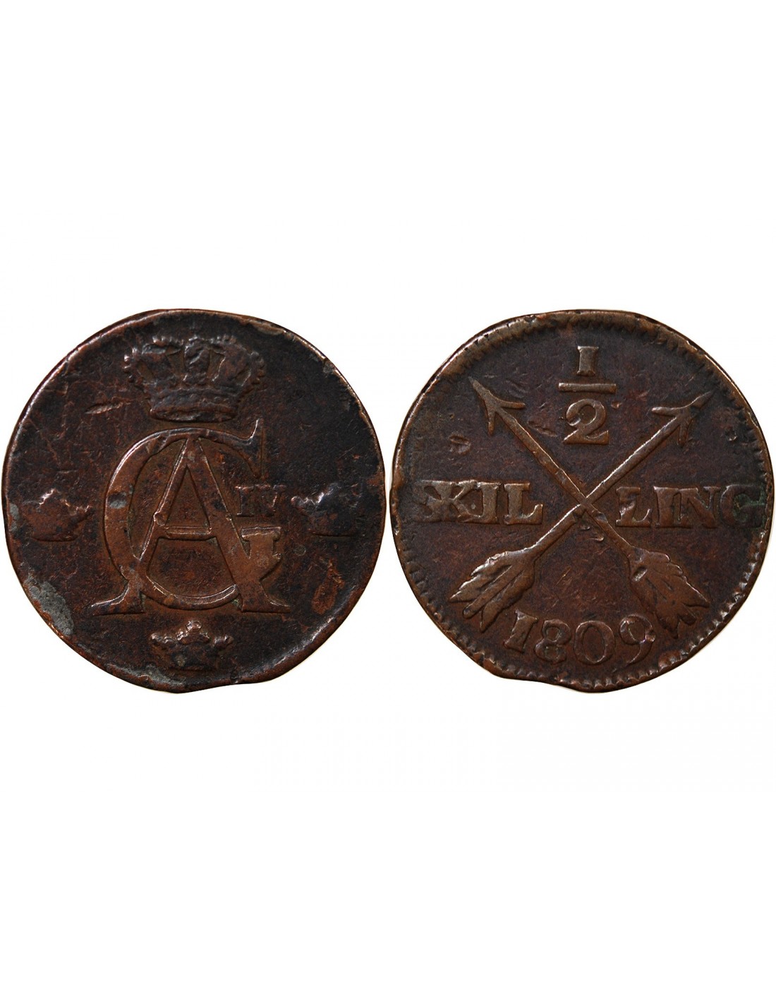 SUÈDE, GUSTAV IV ADOLF - 1/2 SKILLING 1809
