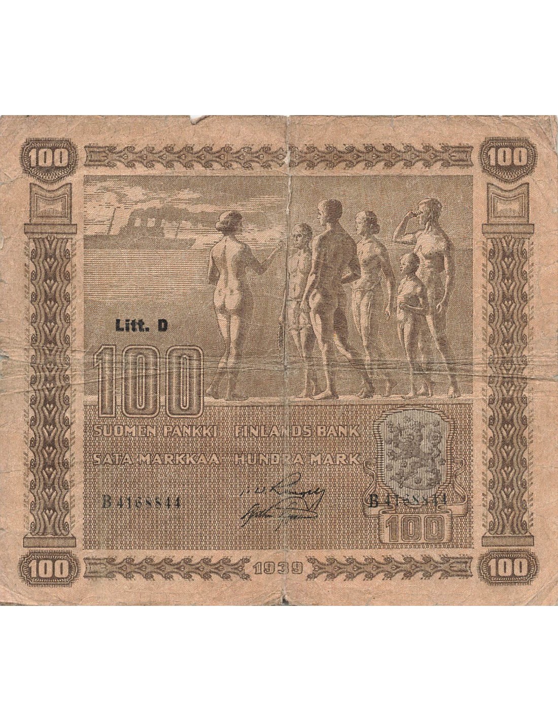 plis, salissures, coupures, déchirure le long du pli vertical, petit manque en marg